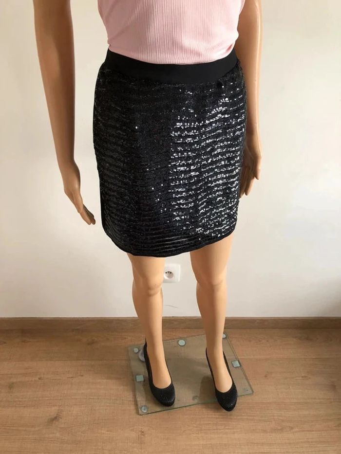 Jupe noire neuve avec sequins Cache Cache taille 36 (valeur 30€) - photo numéro 2
