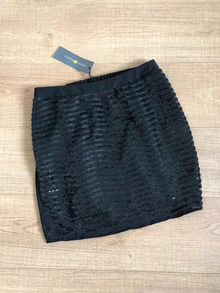 Jupe noire neuve avec sequins Cache Cache taille 36 (valeur 30€) - photo numéro 1
