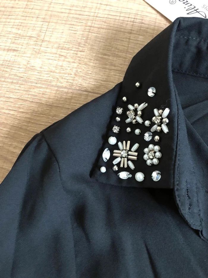 Blouse chemise noire neuve à manches longues avec strass taille unique - photo numéro 5