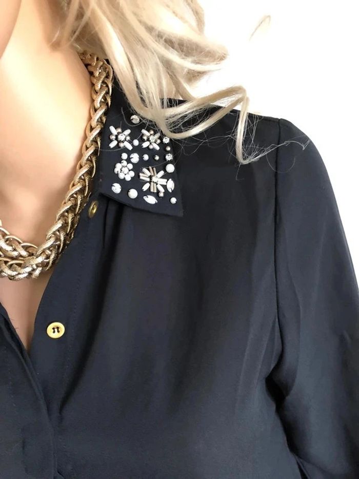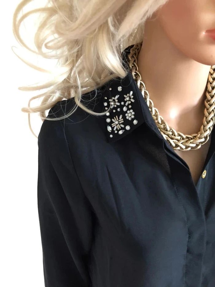 Blouse chemise noire neuve à manches longues avec strass taille unique - photo numéro 12