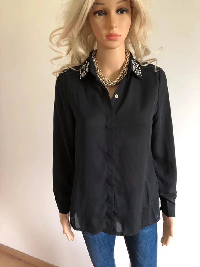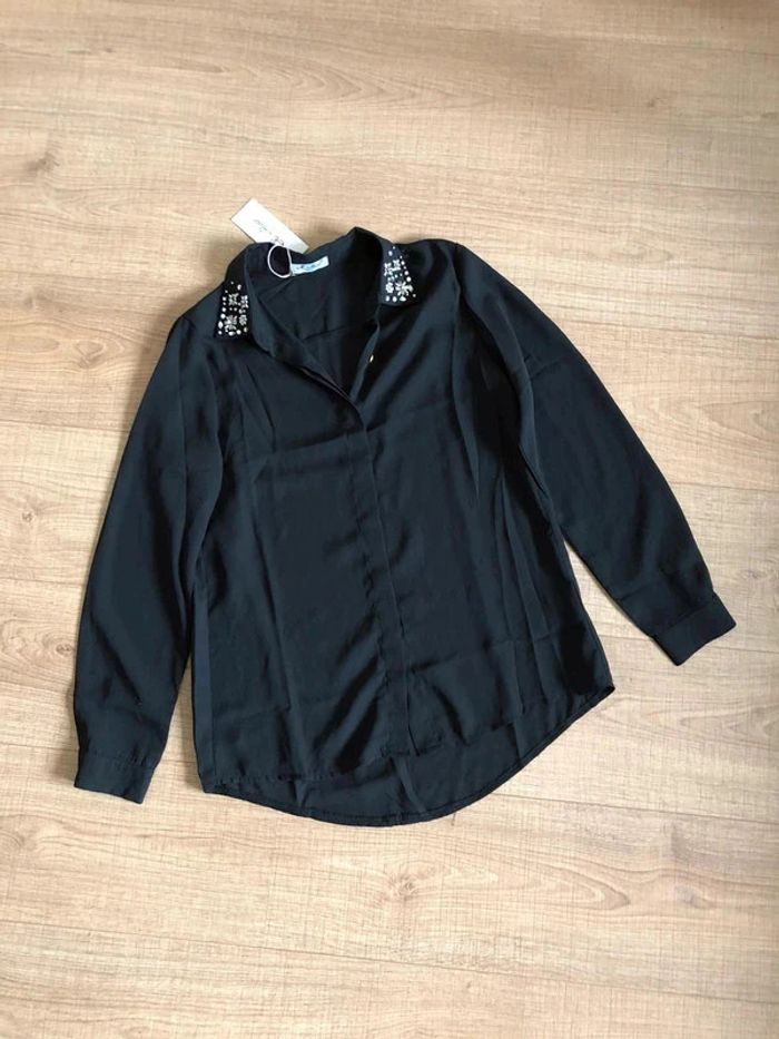 Blouse chemise noire neuve à manches longues avec strass taille unique - photo numéro 1