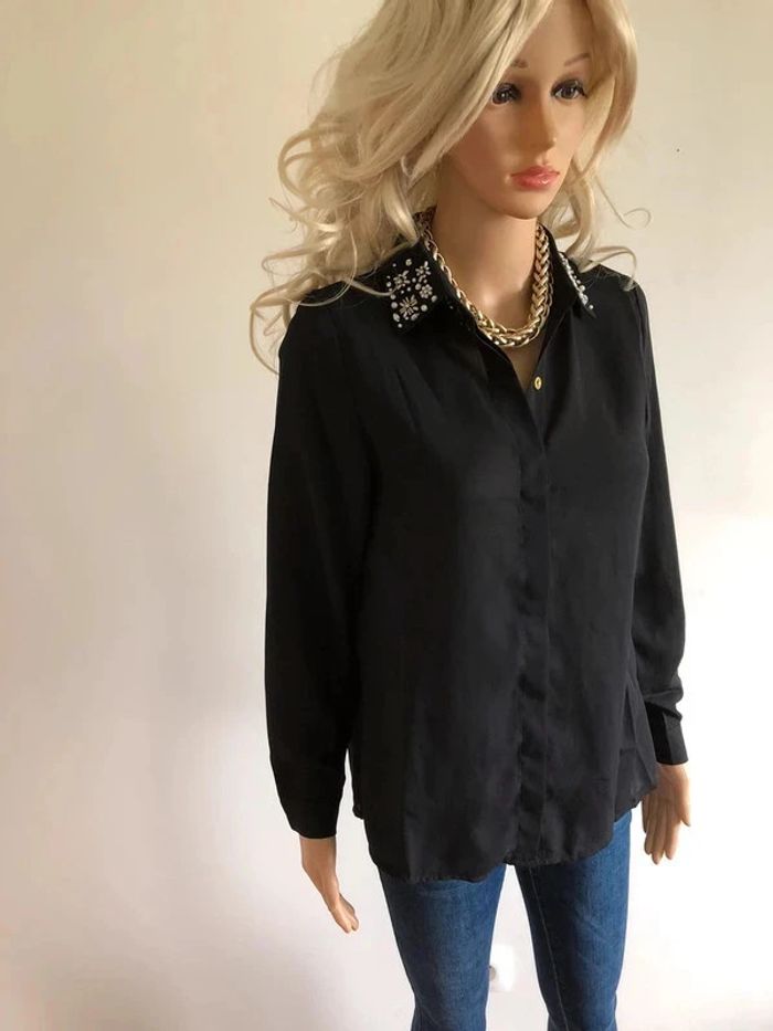 Blouse chemise noire neuve à manches longues avec strass taille unique - photo numéro 3