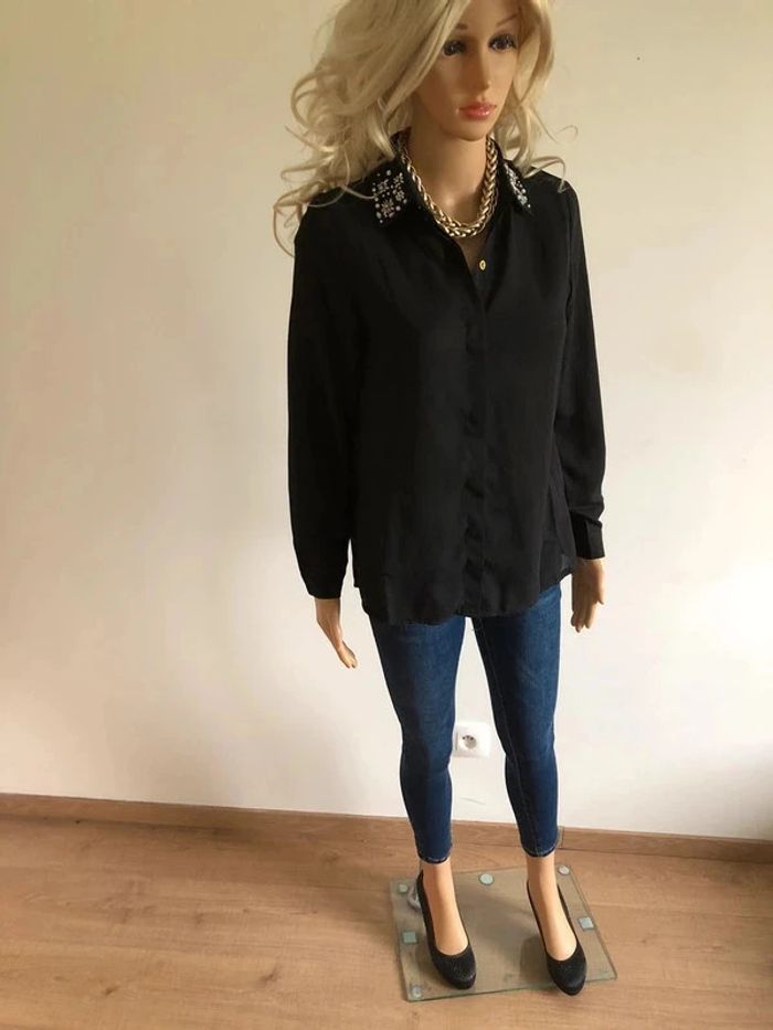 Blouse chemise noire neuve à manches longues avec strass taille unique - photo numéro 4