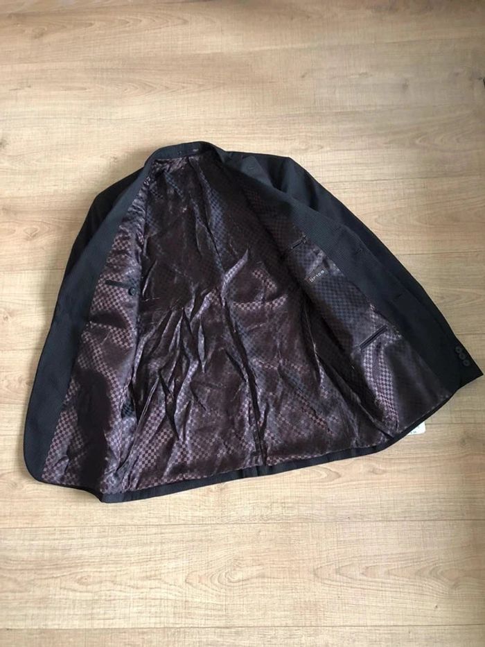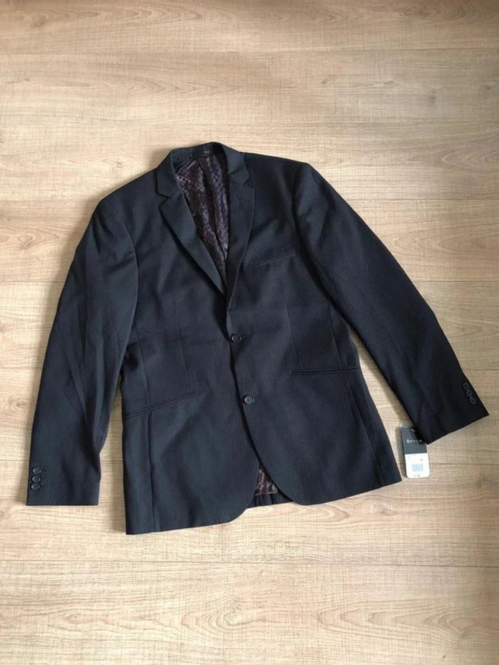 Magnifique blazer noir à rayures marrons pour homme, de marque Brice.