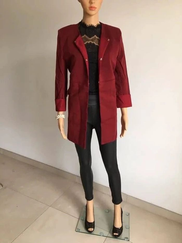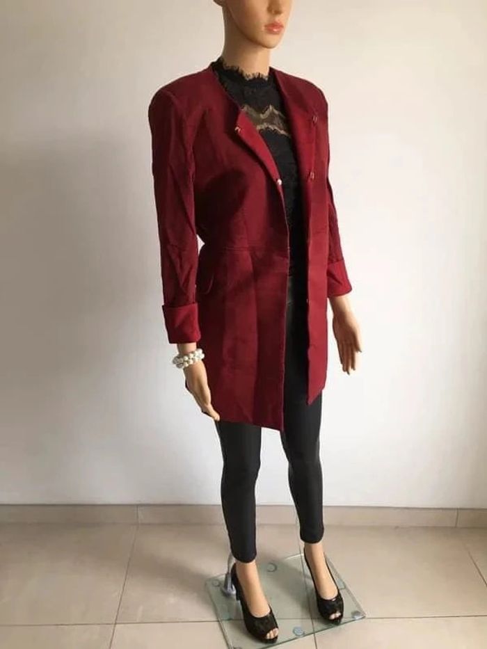 Blazer bordeaux mi long neuf taille L - photo numéro 4