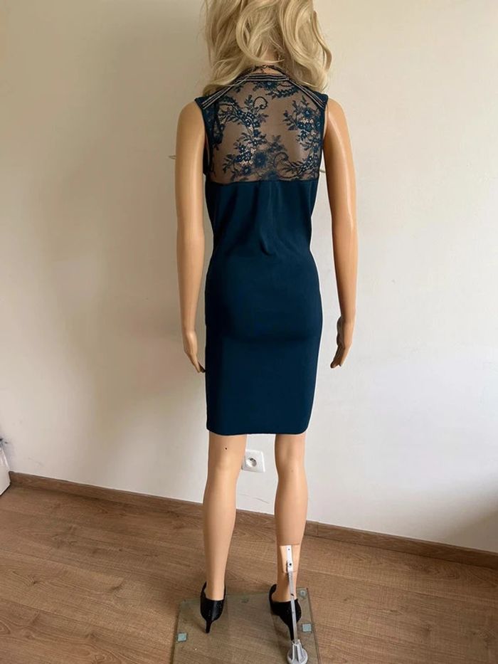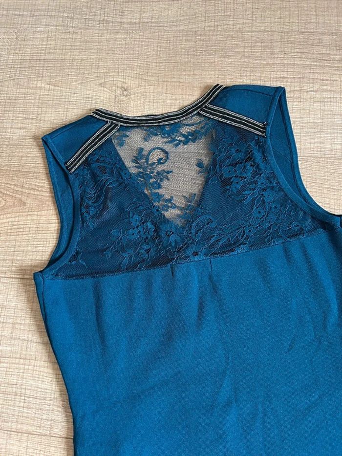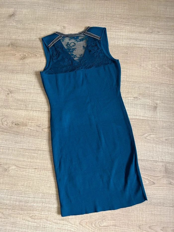Robe bleue pétrole neuve sans manches avec dentelle et strass Morgan taille L (valeur 70€) - photo numéro 5