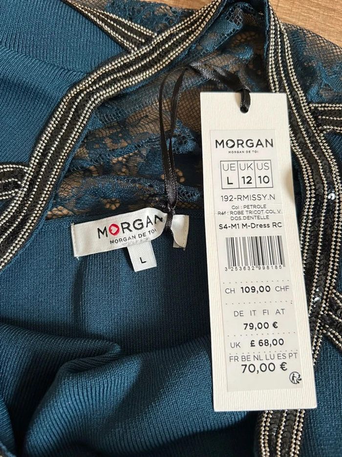 Robe bleue pétrole neuve sans manches avec dentelle et strass Morgan taille L (valeur 70€) - photo numéro 14