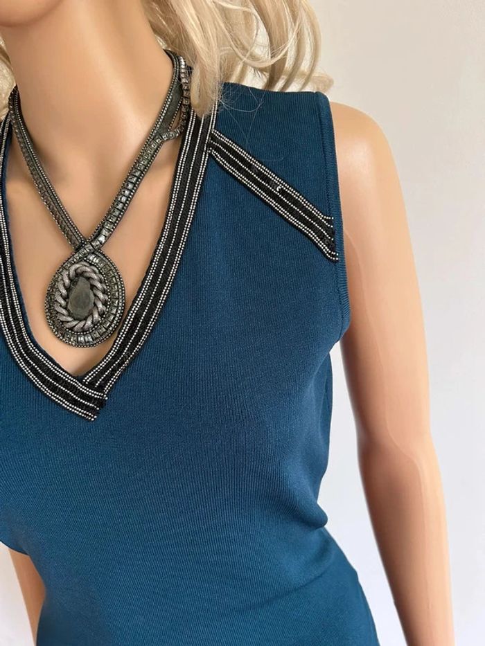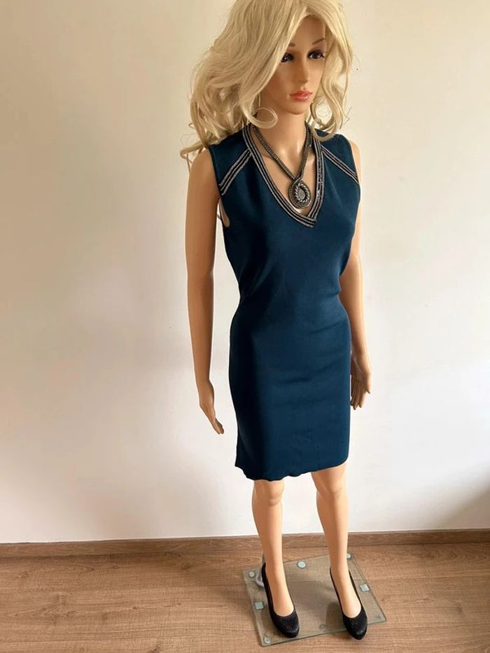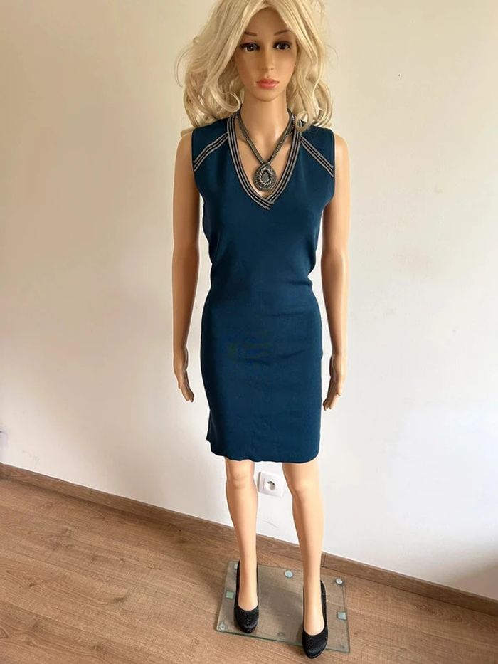 Robe bleue pétrole neuve sans manches avec dentelle et strass Morgan taille L (valeur 70€) - photo numéro 8