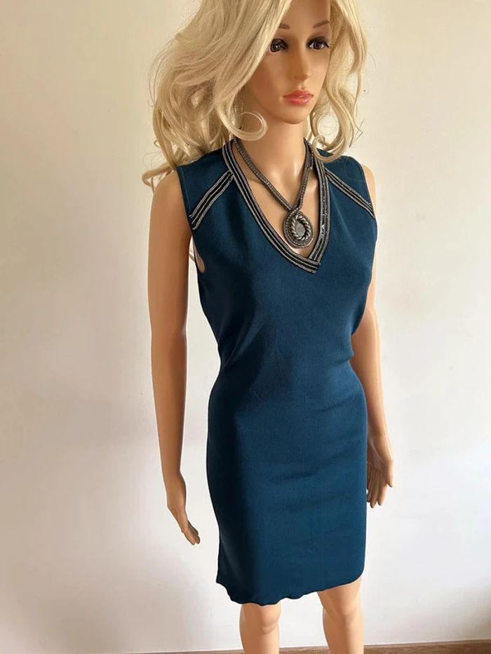 Robe bleue pétrole neuve sans manches avec dentelle et strass Morgan taille L (valeur 70€)