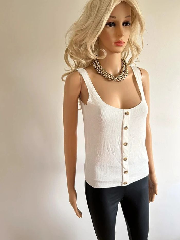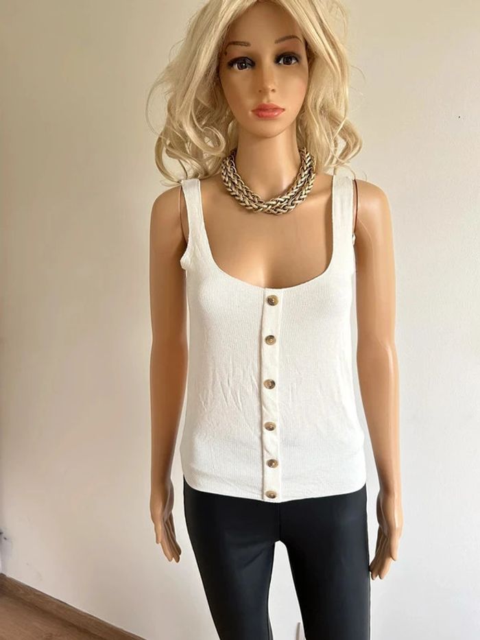 Top blanc écru neuf sans manches Stradivarius taille M (avec défaut) - photo numéro 16