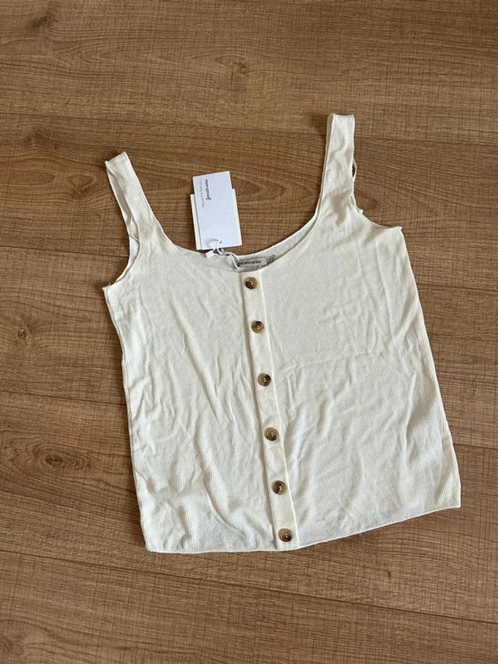 Top blanc écru neuf sans manches Stradivarius taille M (avec défaut)