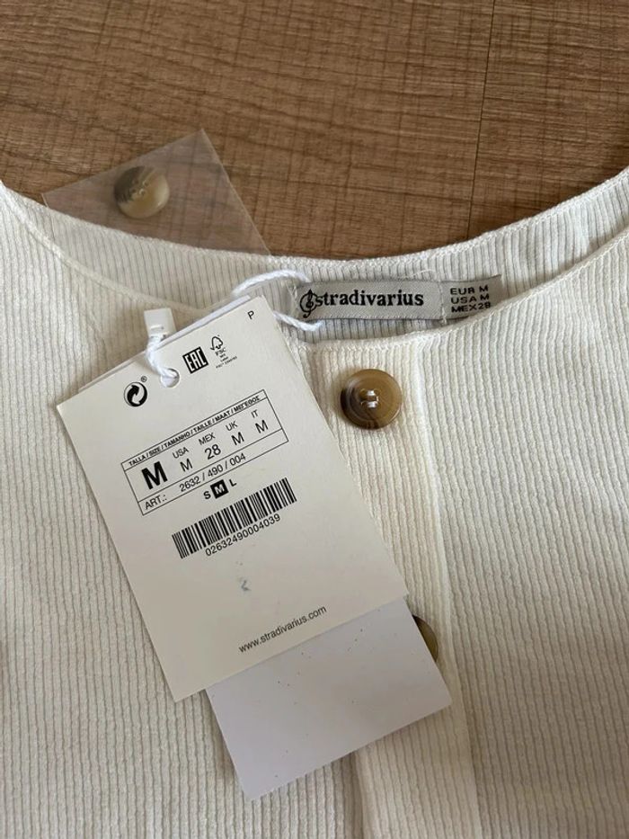 Joli top blanc écru sans manches, de marque Stradivarius. Taille M. Il est neuf avec étiquette, mais présente un léger défaut au niveau de la couture du bas. aisselle à aisselle 39 cms et plus taille 38 cms et plus longueur depuis épaule 52 cms Le tissu est extensible 94% viscose et 6% elasthanne (Boîte 4)