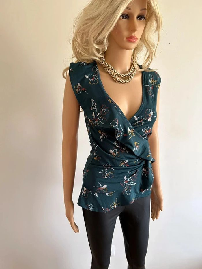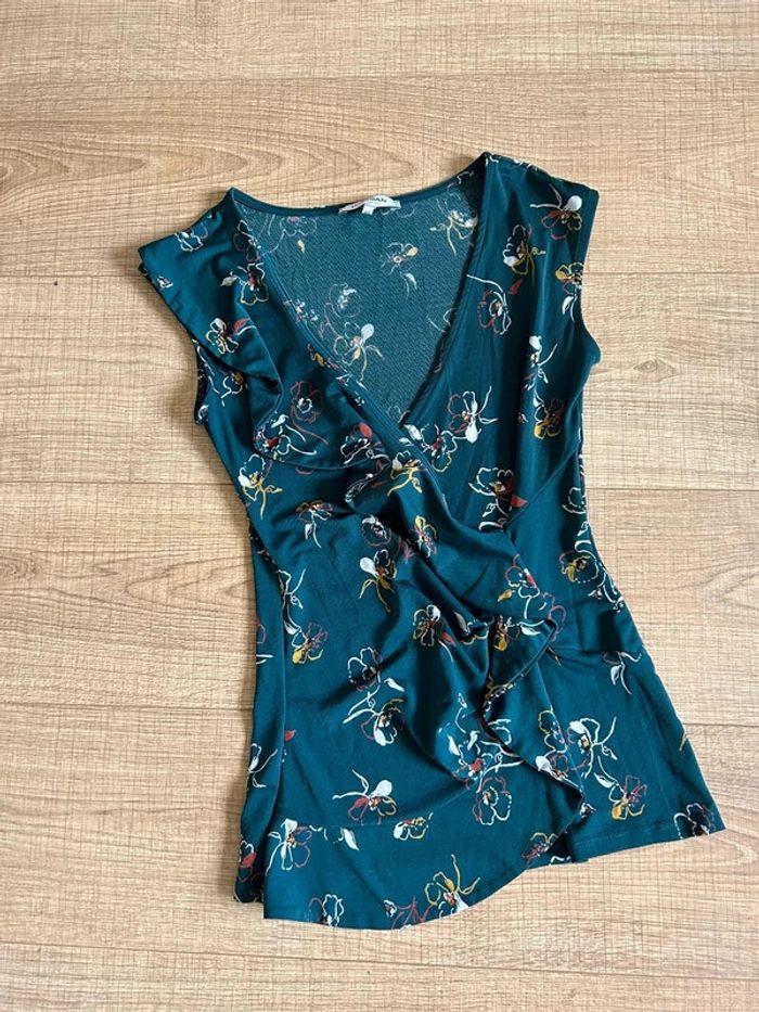 Blouse vert foncée et imprimée sans manches Morgan taille XS jamais portée