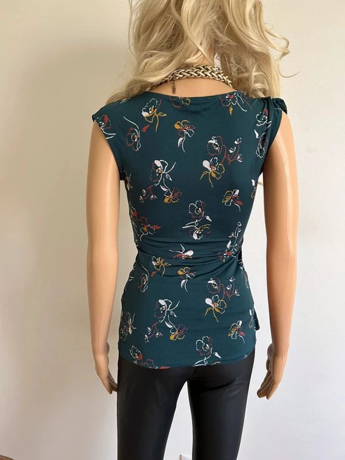 Blouse vert foncée et imprimée sans manches Morgan taille XS jamais portée - photo numéro 12