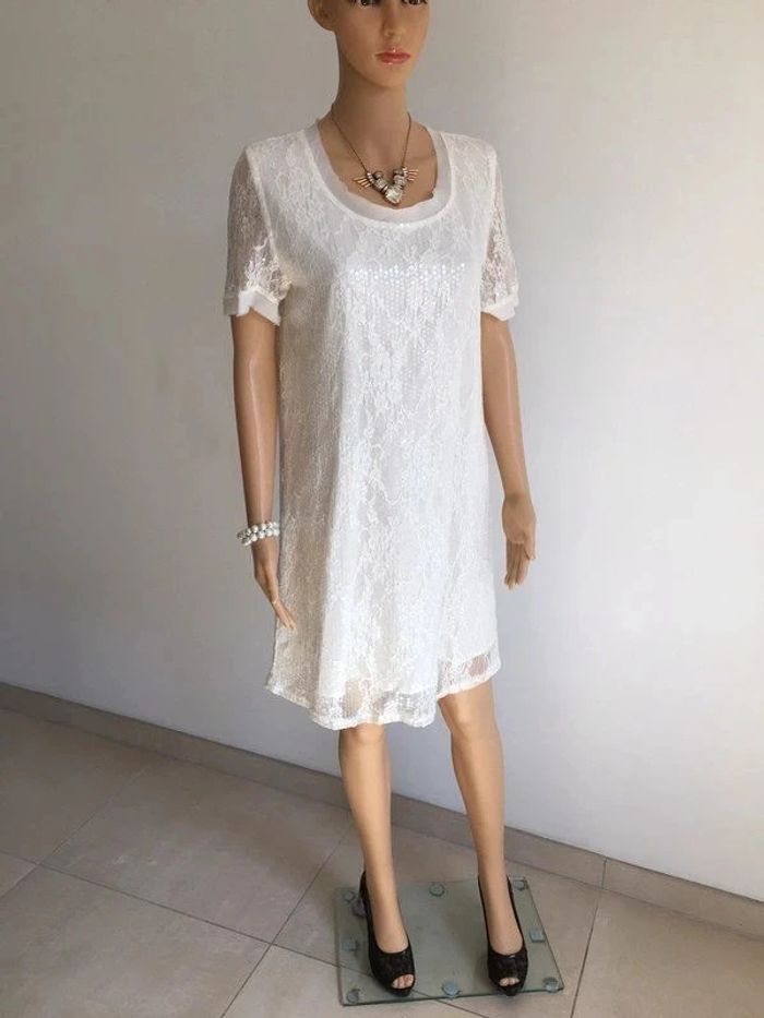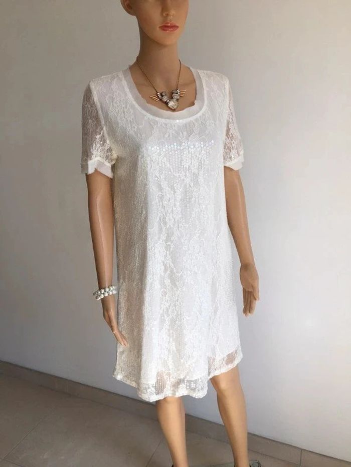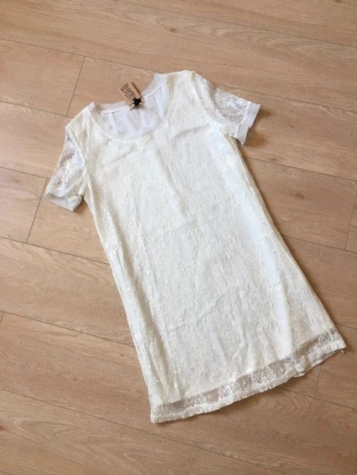 Robe blanche neuve avec dentelle et sequins Molly Bracken taille unique (valeur 55€) - photo numéro 2