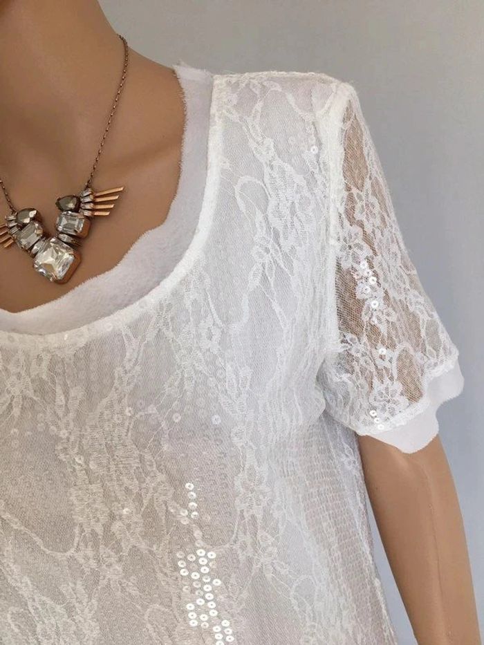 Robe blanche neuve avec dentelle et sequins Molly Bracken taille unique (valeur 55€) - photo numéro 10