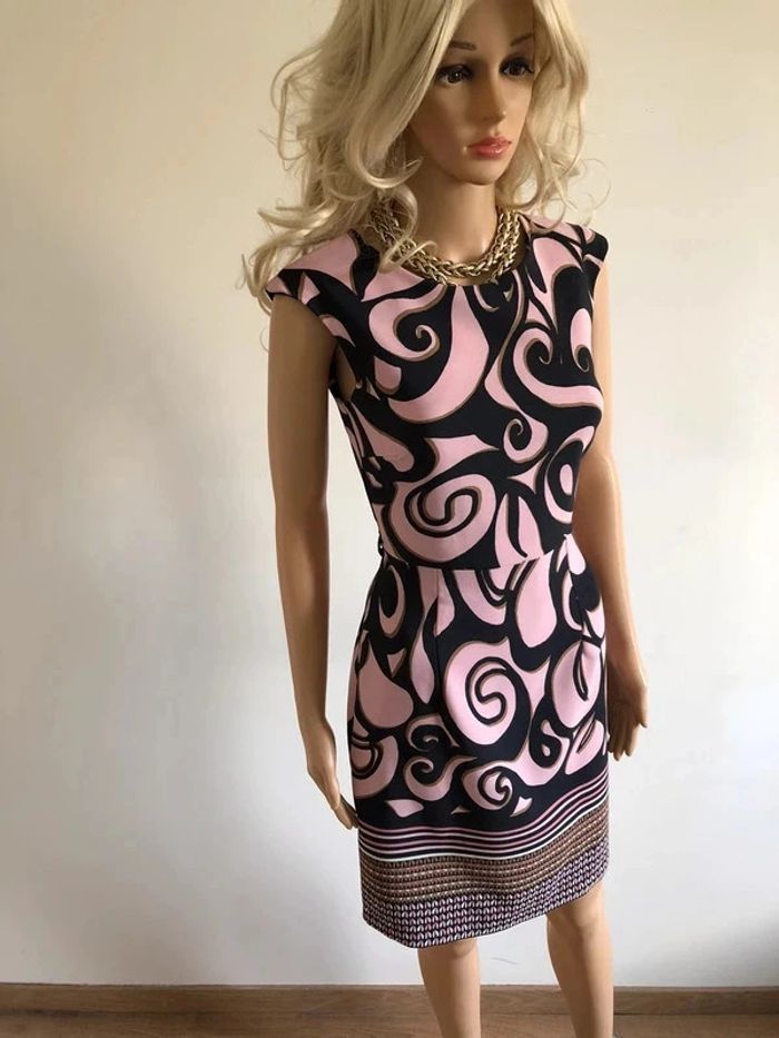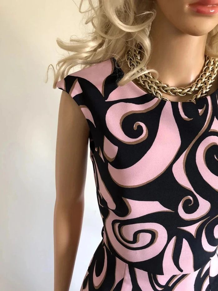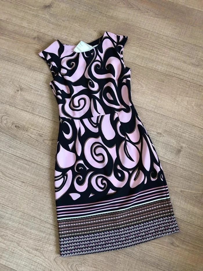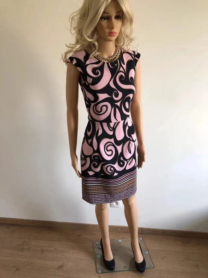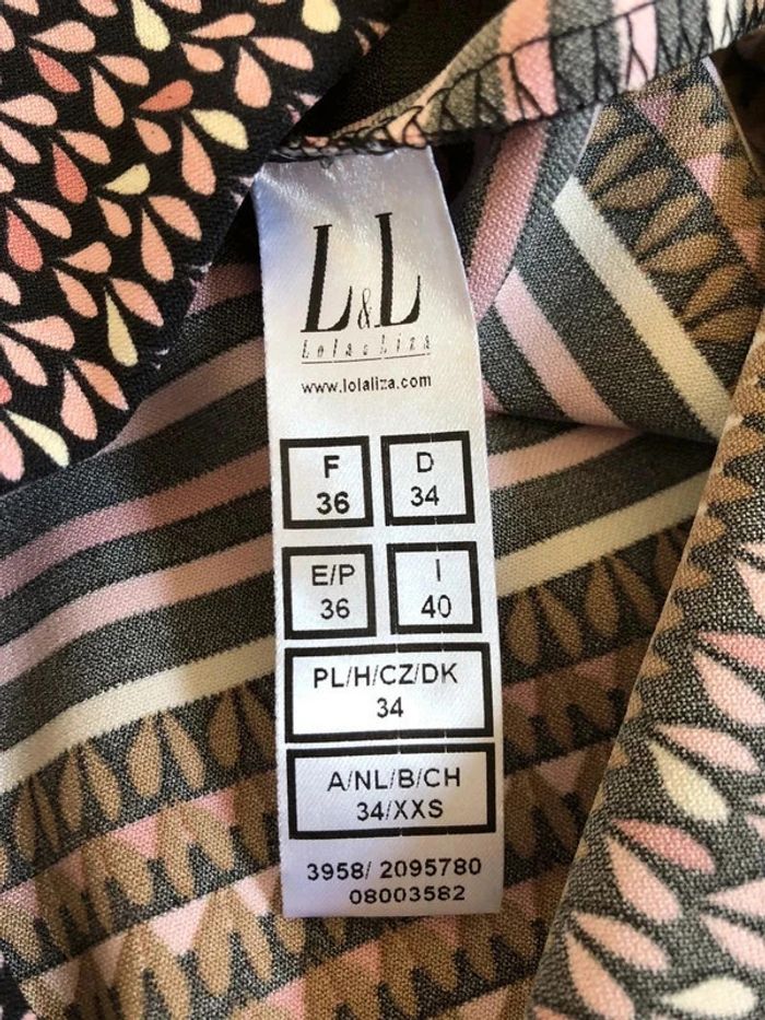Jolie robe rose claire et noire, sans manches, de marque LolaLiza. Fermeture dans le dos. Taille française 36. Possibilité de mettre une petite ceinture, il y a des passants. Elle est neuve avec étiquette (valeur 60€). aisselle à aisselle 41 cms taille 34 cms longueur depuis épaule 92 cms Le tissu est légèrement extensible 96% polyester et 4% elasthanne Le prix reste négociable dans la limite du raisonnable. Le prix reste négociable dans la limite du raisonnable. Un petit cadeau dans le colis.