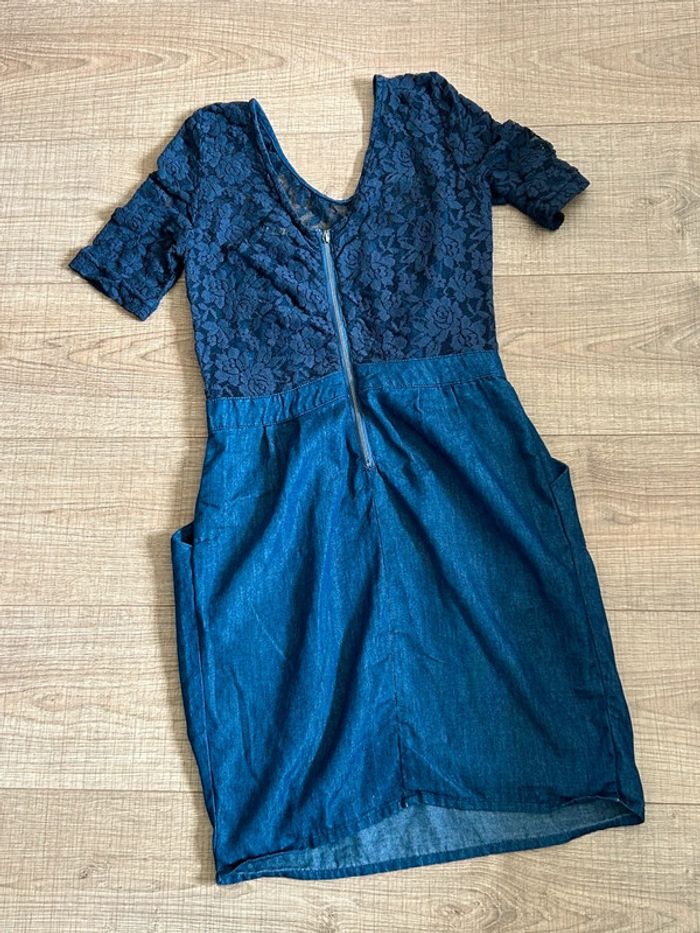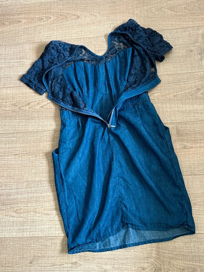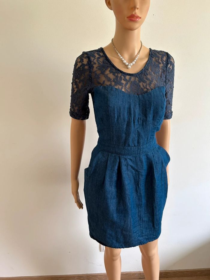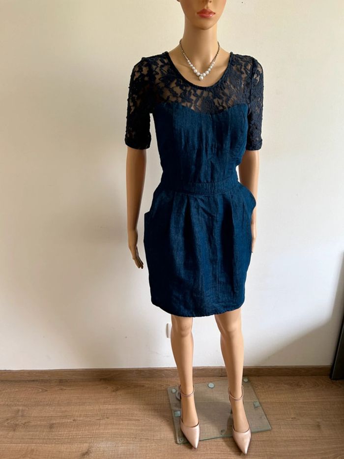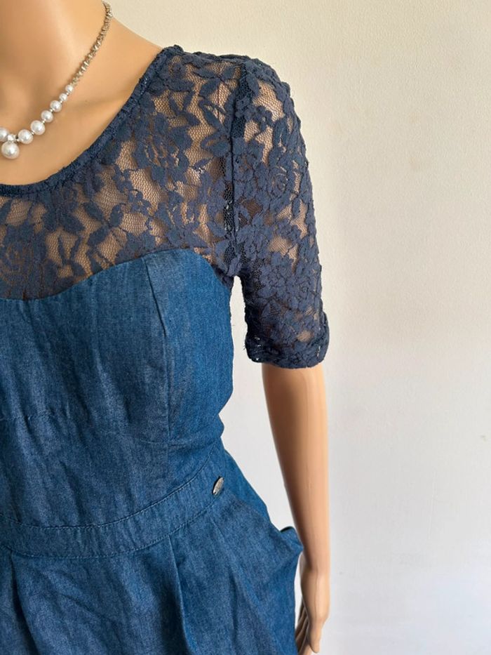 Jolie robe bleue marine en jean, avec dentelle, de marque Kaporal. Fermeture dans le dos. Taille S. Portée plusieurs fois, en bon état. aisselle à aisselle 44 cms épaule à épaule 37 cms taille 35 cms longueur depuis épaule 89 cms 69% coton et 31% polyester Le prix reste négociable dans la limite du raisonnable. Un petit cadeau dans le colis 🌸