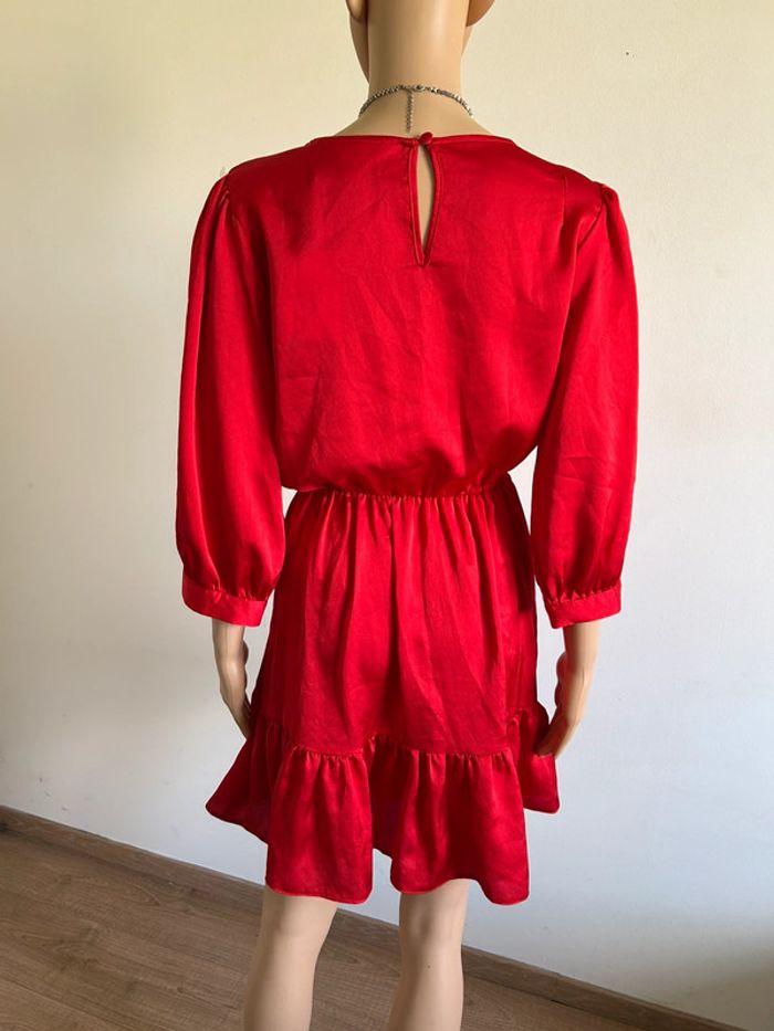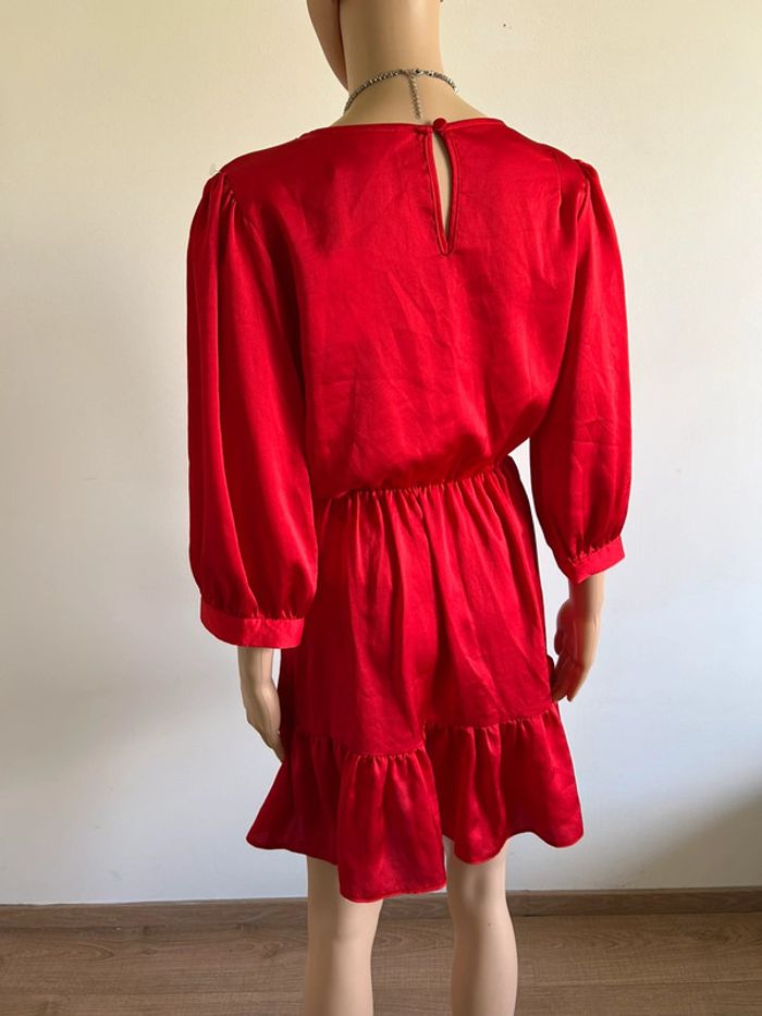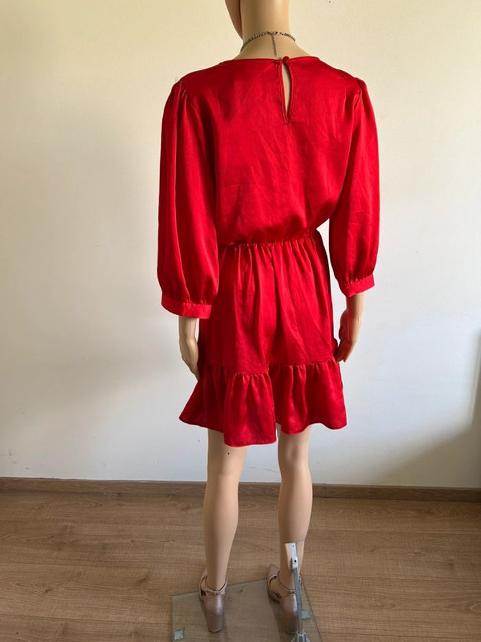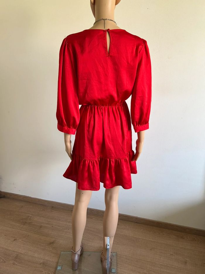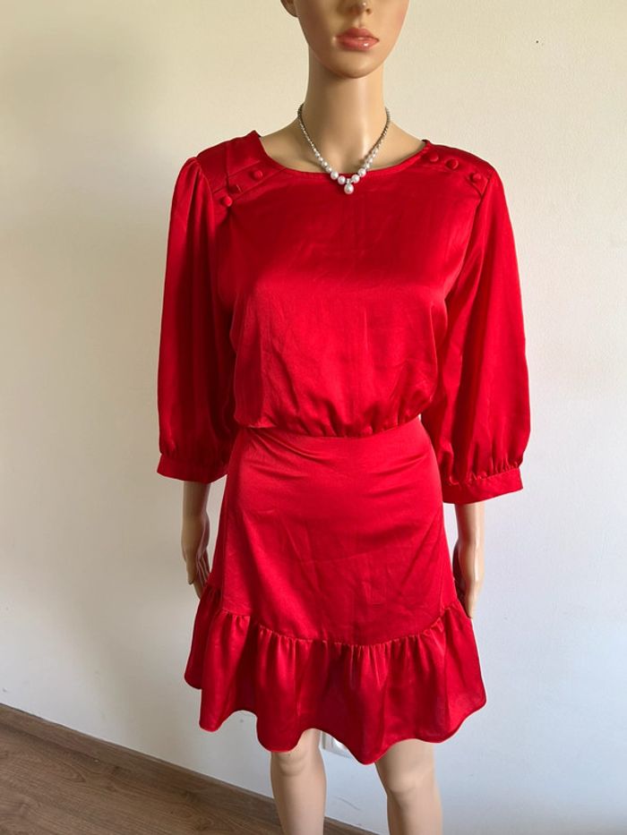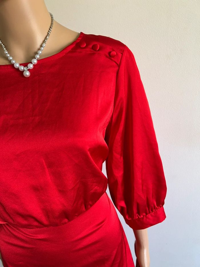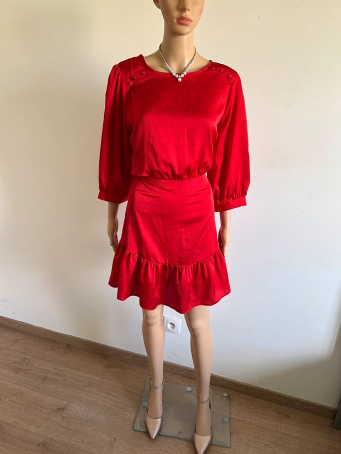 Magnifique robe rouge satinée avec manches 3/4, de marque Naf Naf.