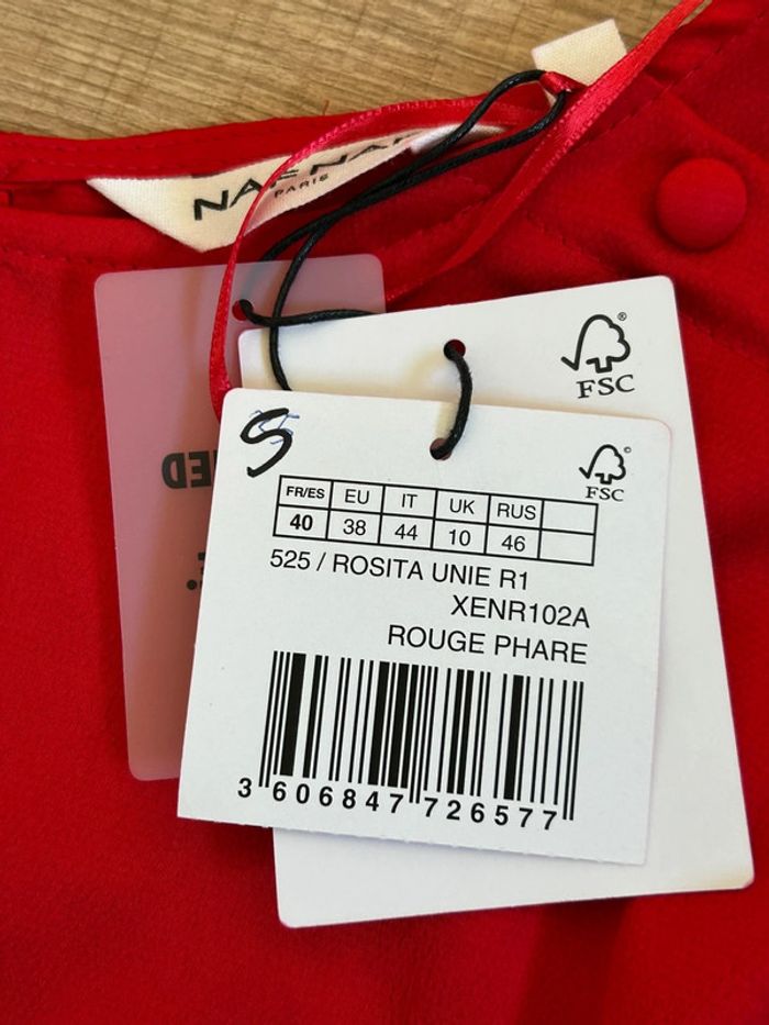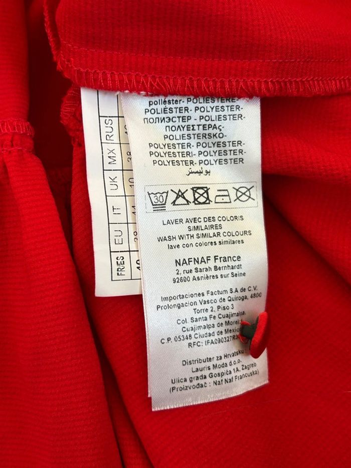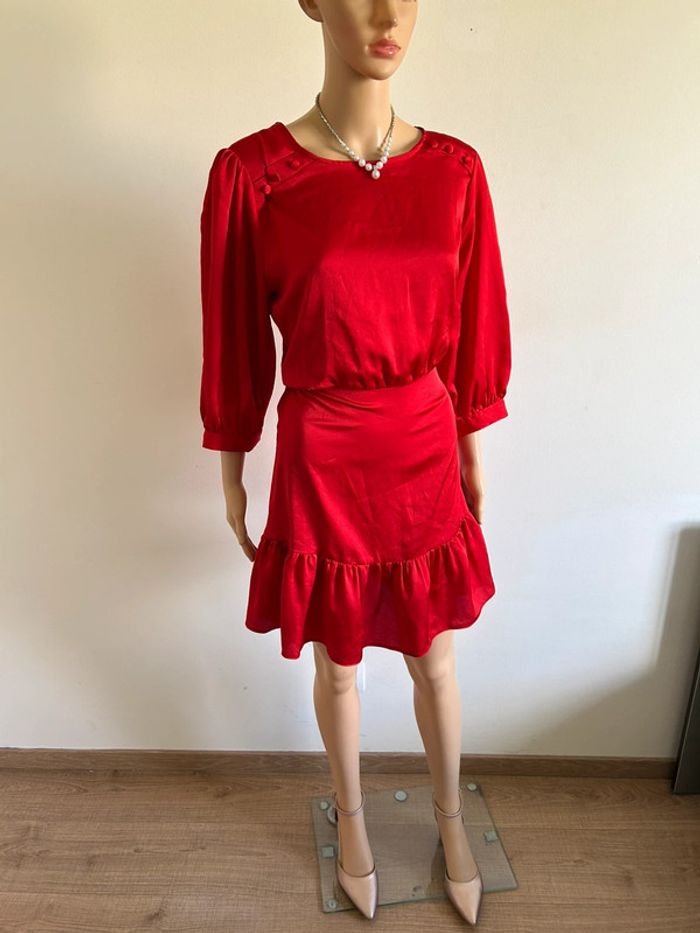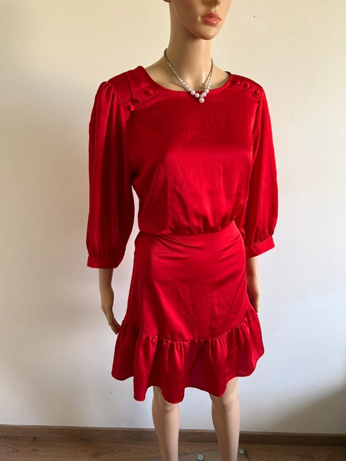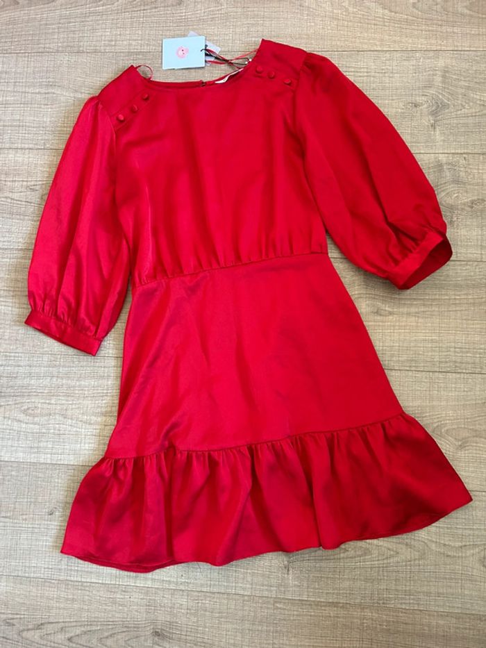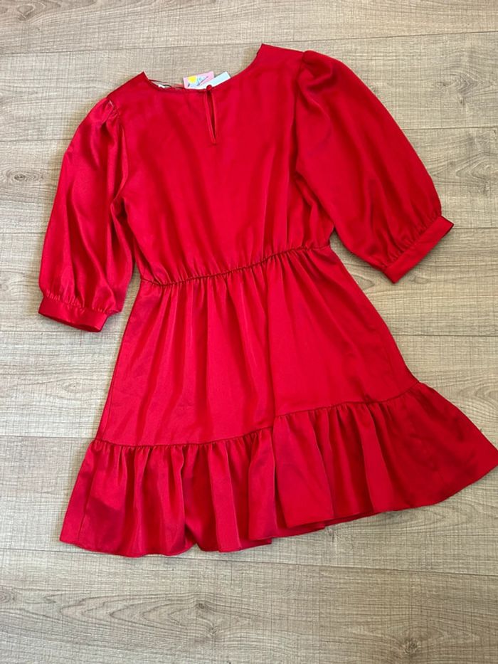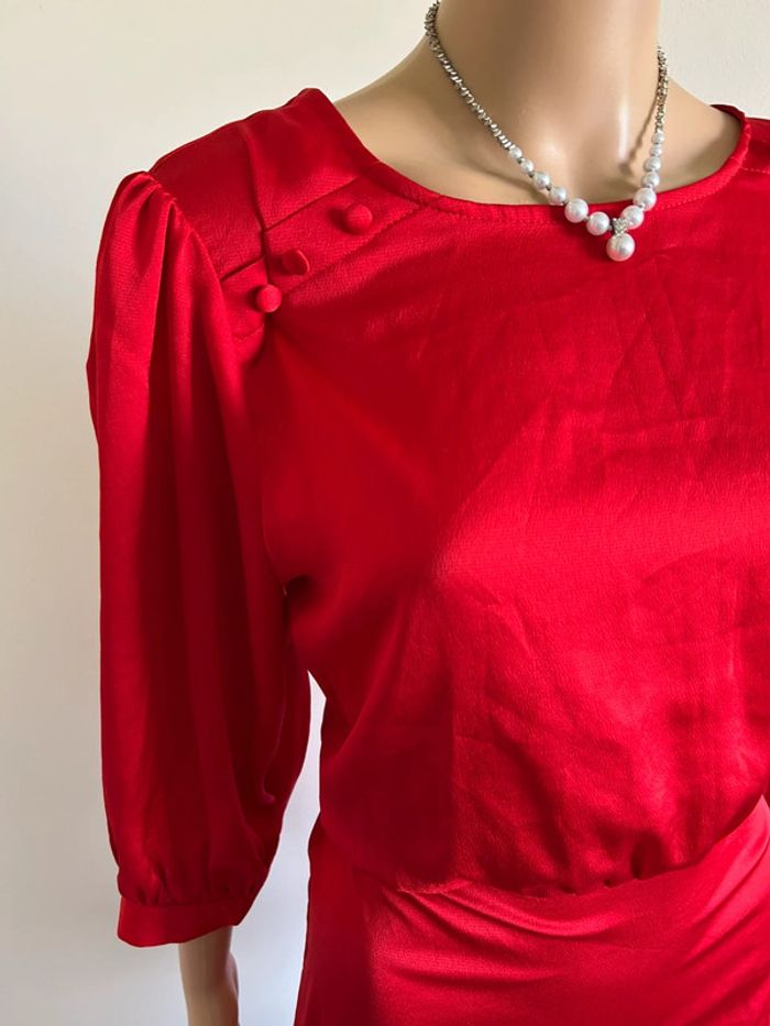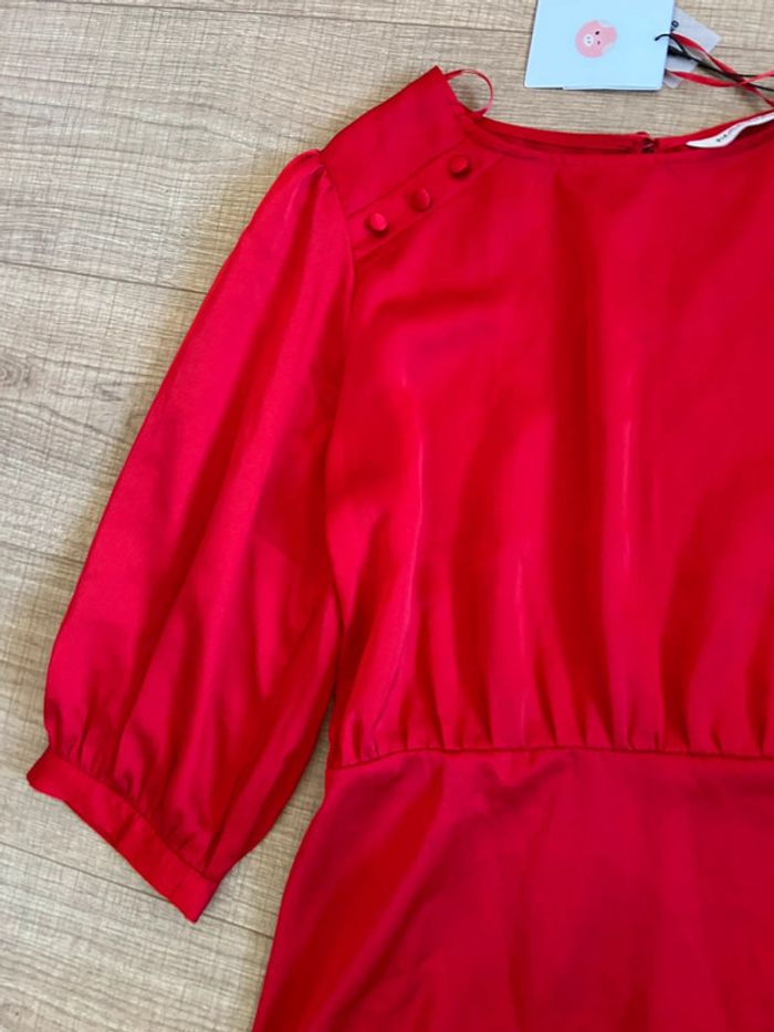 Magnifique robe rouge satinée avec manches 3/4, de marque Naf Naf.