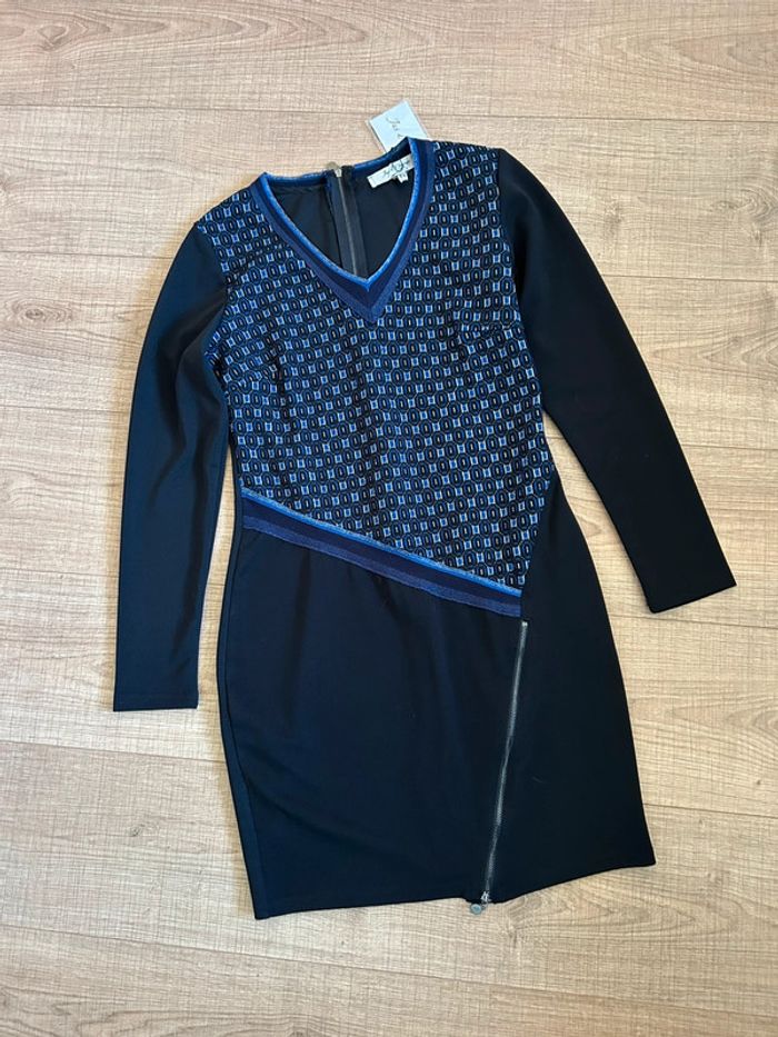Robe bleue et noire neuve à manches longues Jus d’Orange taille 2 - photo numéro 2