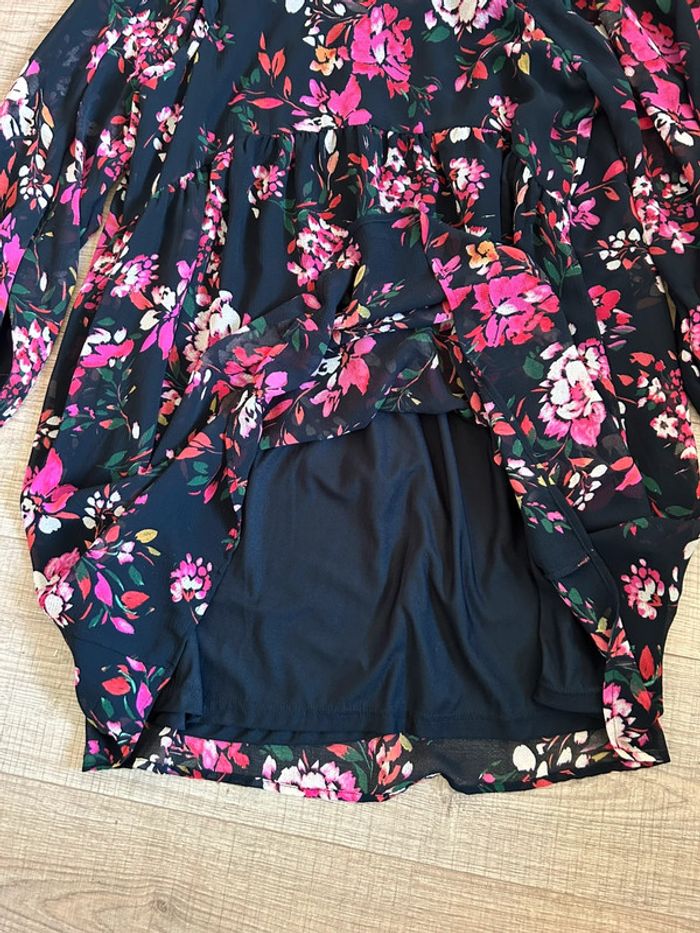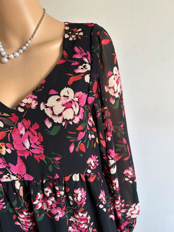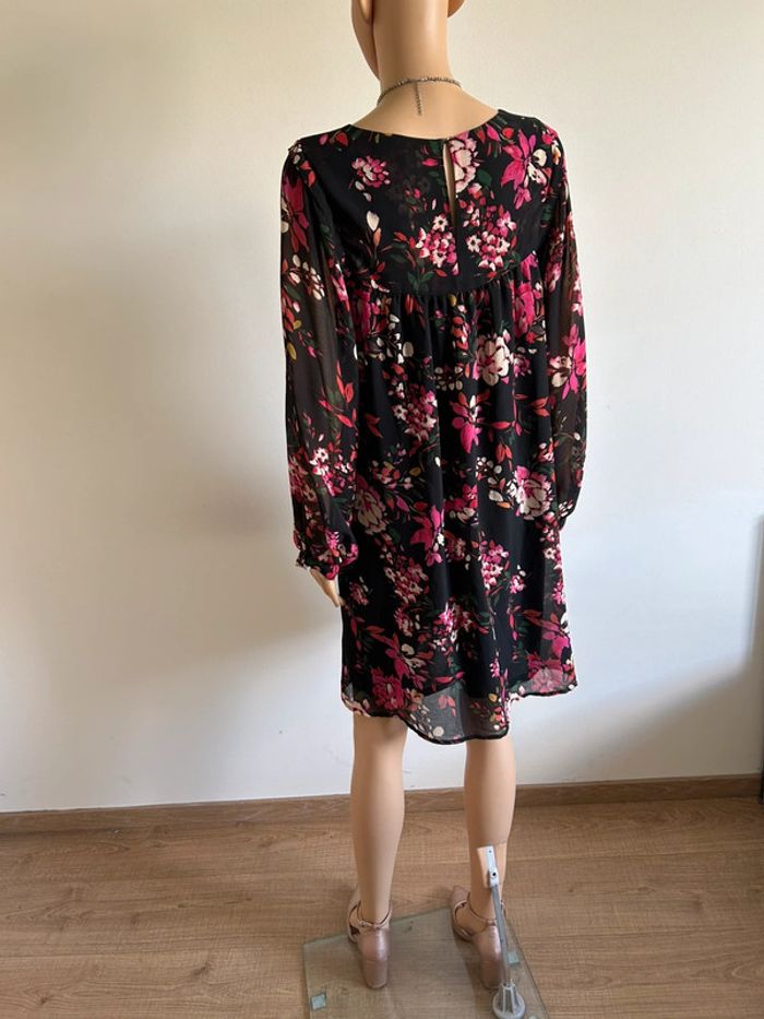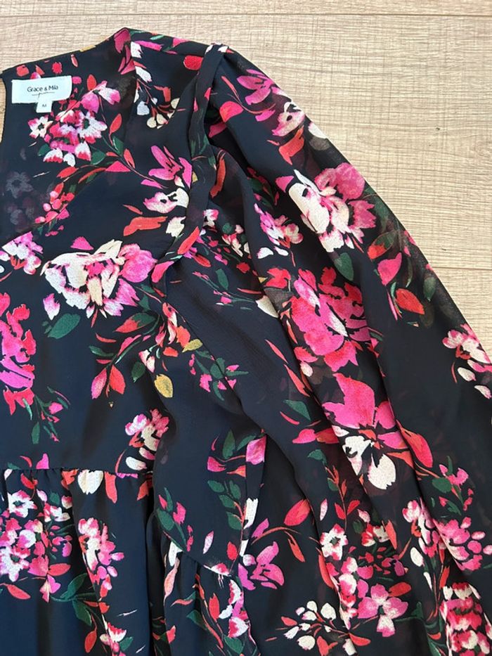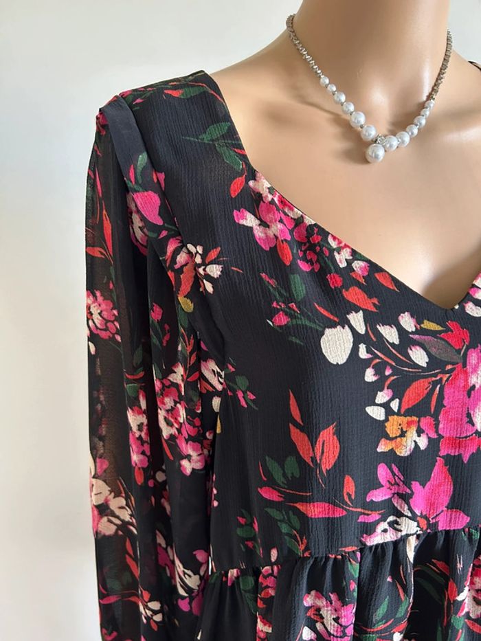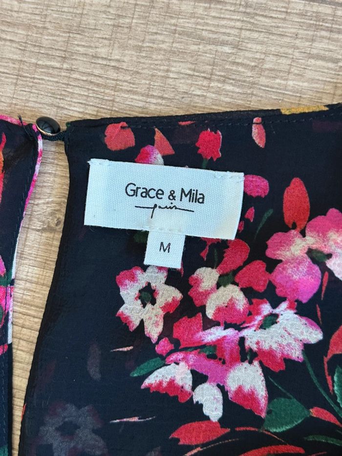 Magnifique robe noire et fleurie à manches longues, de marque Grace & Mila. Taille M. Jamais portée, état neuf. aisselle à aisselle 48 cms épaule à épaule 38 cms longueur manches 61 cms taille 47 cms longueur depuis épaule 91 cms 100% polyester Le prix reste négociable dans la limite du raisonnable. Un petit cadeau dans le colis 🌸
