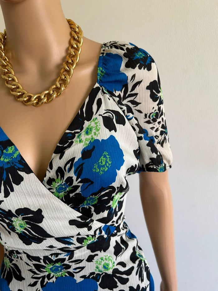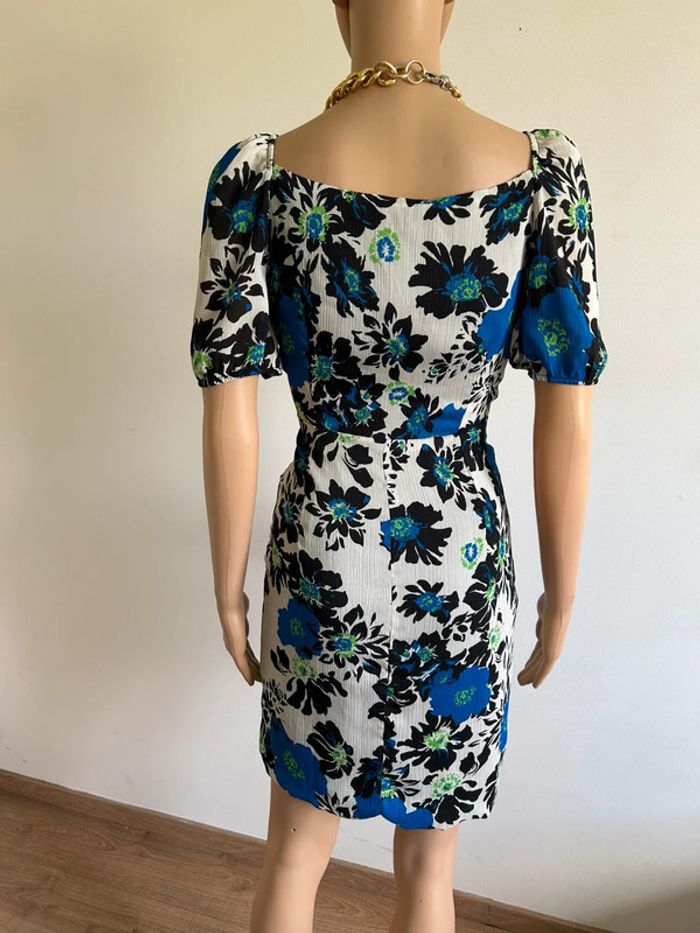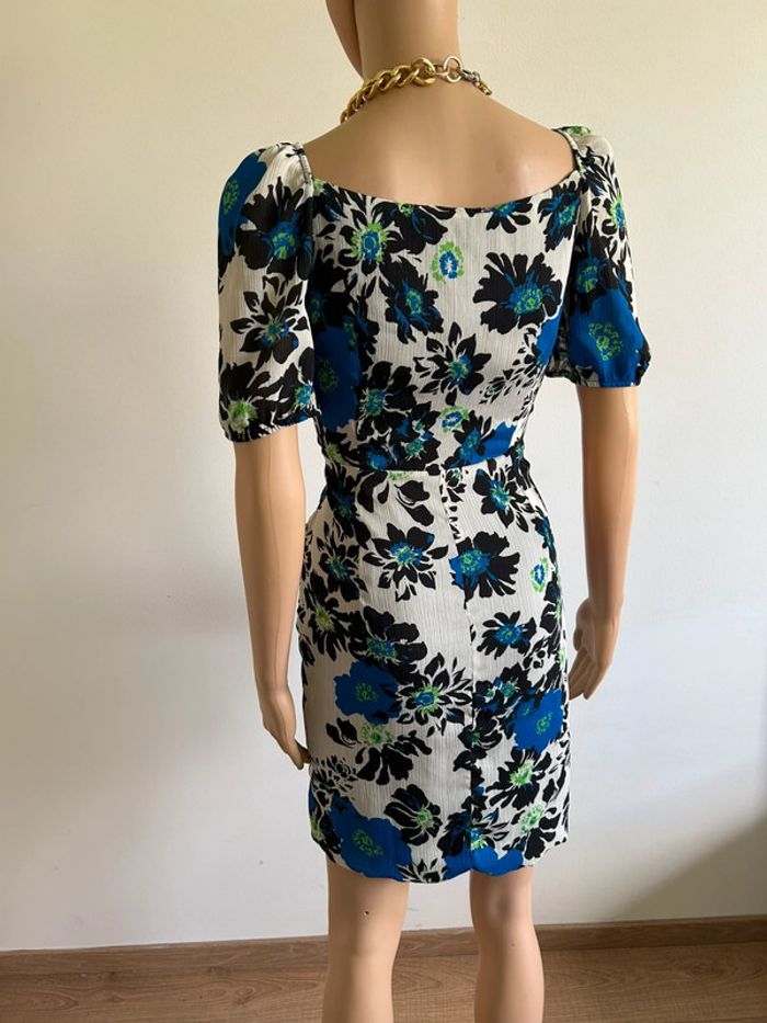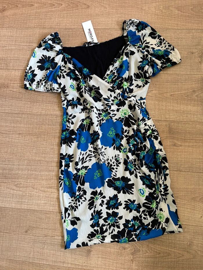 Magnifique robe imprimée à manches courtes, de marque Morgan. Fermeture sur le côté. Taille 38. Elle est neuve avec étiquette (valeur 80€). aisselle à aisselle 46 cms taille 36 cms longueur depuis épaule 90 cms 100% polyester Le prix reste négociable dans la limite du raisonnable. Un petit cadeau dans le colis 🌸