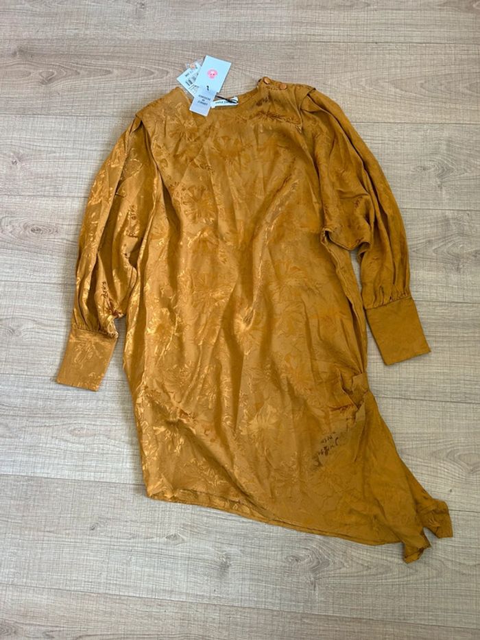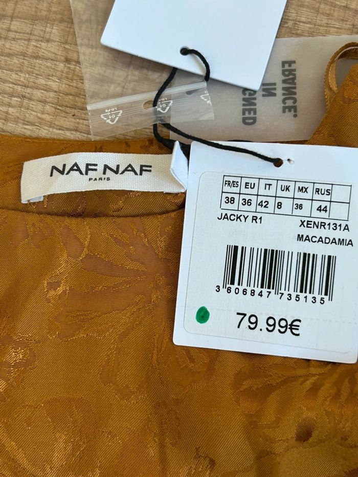 Jolie robe jaune moutard satinée à manches longues, de marque Naf Naf. Taille 38. Elle est neuve avec étiquette (valeur 80€). aisselle à aisselle 54 cms épaule à épaule 38 cms longueur manches 62 cms taille 52 cms longueur depuis épaule 89 cms 100% viscose Le prix reste négociable dans la limite du raisonnable. Un petit cadeau dans le colis 🌸