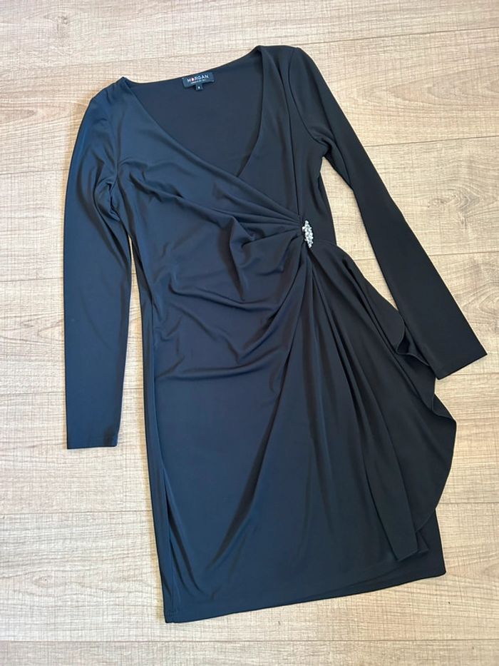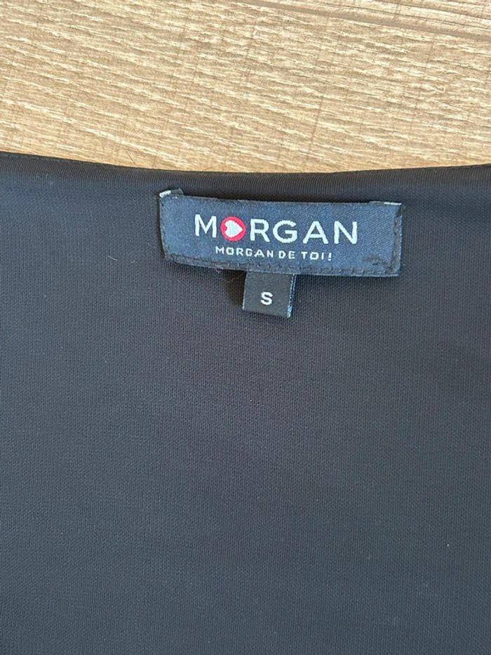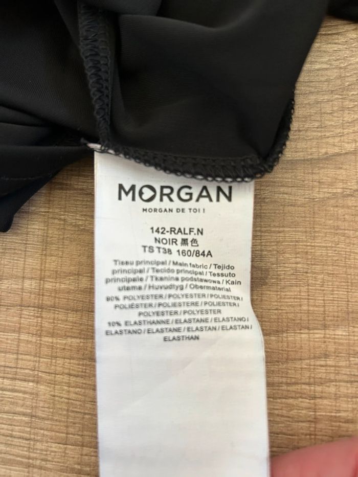 Magnifique robe noire à manches longues, de marque Morgan. Taille S. Jamais portée, état neuf. aisselle à aisselle 42 cms et plus épaule à épaule 36 cms et plus longueur manches 60 cms taille 34 cms à 39 cms longueur depuis épaule 91 cms Le tissu est extensible 90% polyester et 10% elasthanne Le prix reste négociable dans la limite du raisonnable. Un petit cadeau dans le colis 🌸 (Boîte 31)