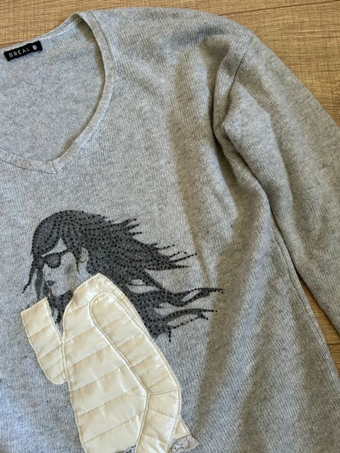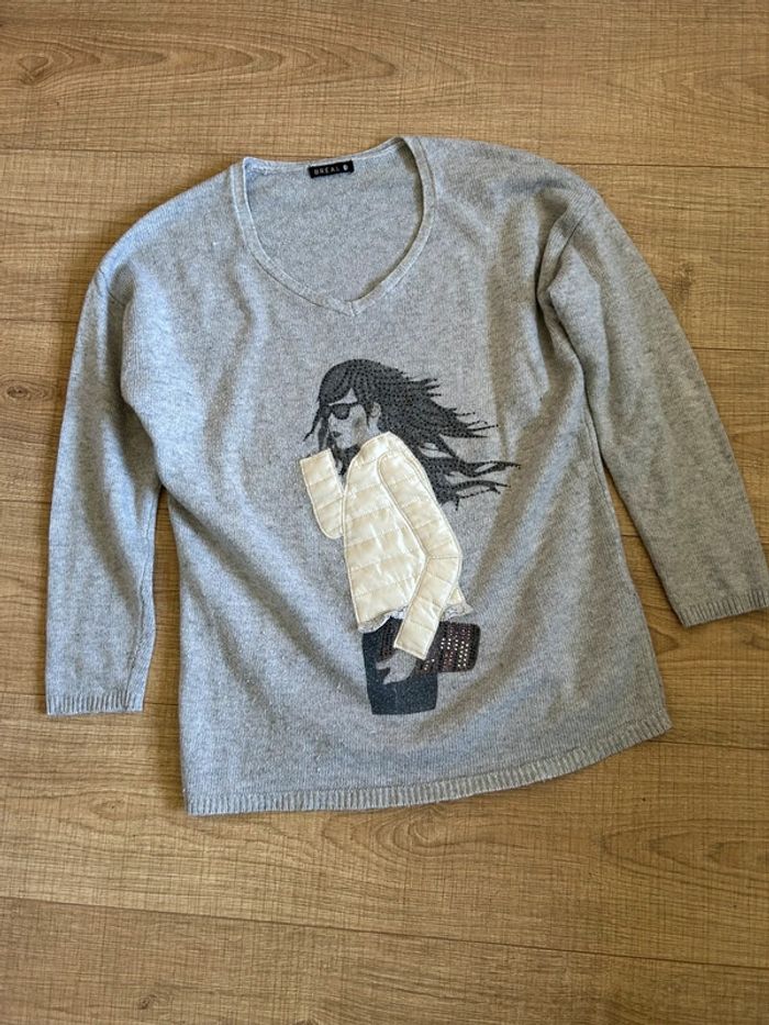 Pull gris à manches longues Breal taille 2 état satisfaisant - photo numéro 11