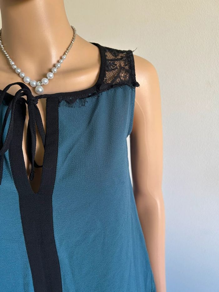 Blouse bleue canard et noire sans manches Naf Naf taille S TBE - photo numéro 7