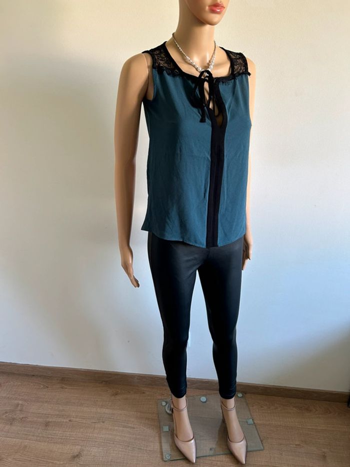 Blouse bleue canard et noire sans manches Naf Naf taille S TBE - photo numéro 14