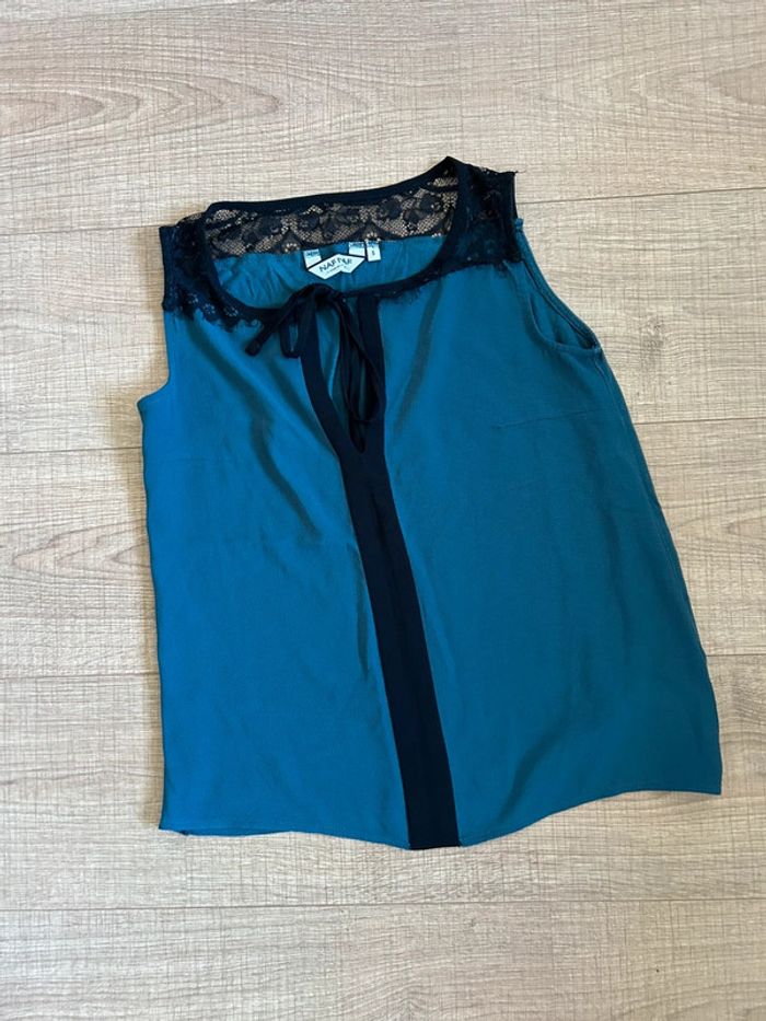 Blouse bleue canard et noire sans manches Naf Naf taille S TBE - photo numéro 13