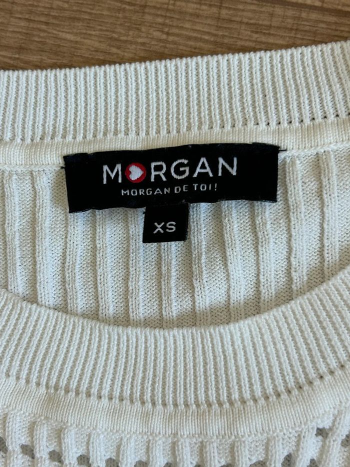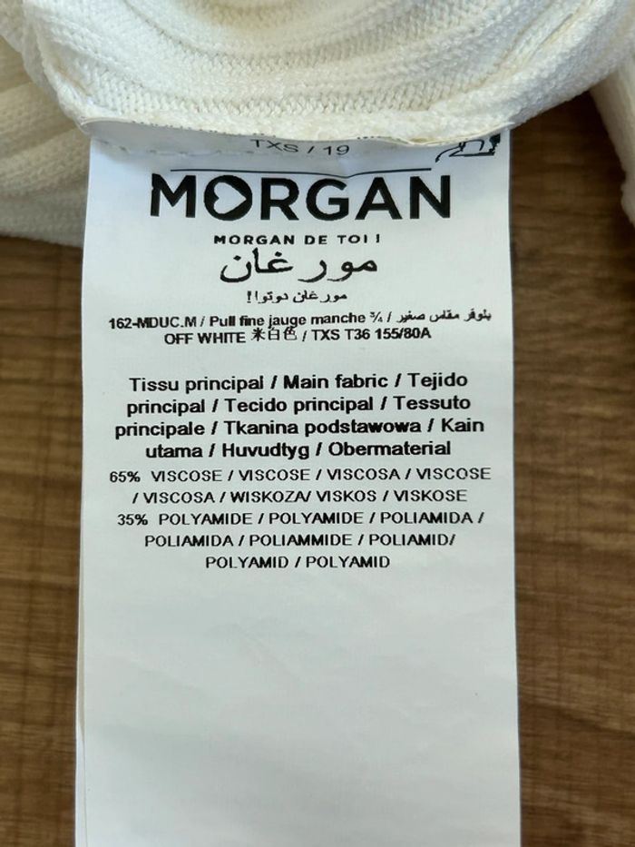 Pull blanc avec manches 3/4 Morgan taille XS jamais porté (avec défaut) - photo numéro 13
