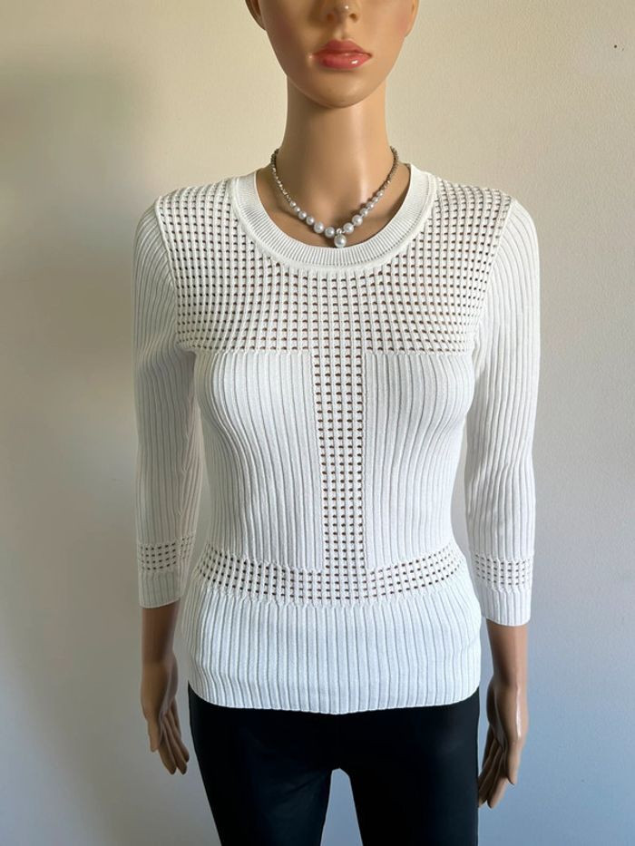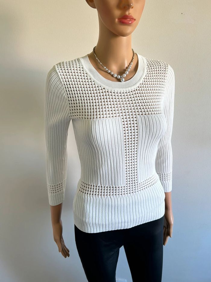 Pull blanc avec manches 3/4 Morgan taille XS jamais porté (avec défaut) - photo numéro 17