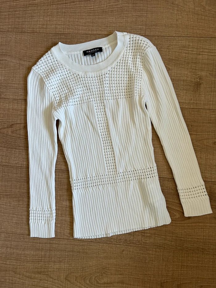 Pull blanc avec manches 3/4 Morgan taille XS jamais porté (avec défaut) - photo numéro 1