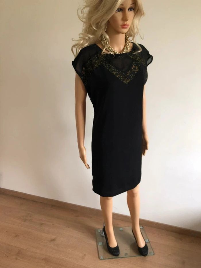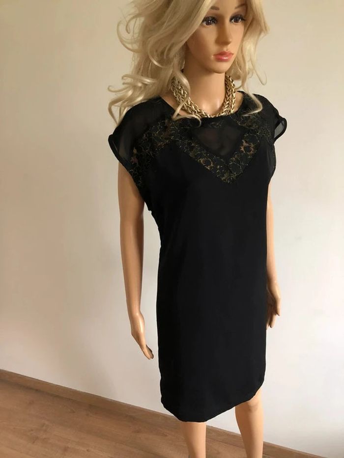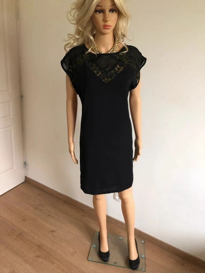 robe noire et dorée à manches courtes avec dentelle Grace & Mila taille S jamais portée - photo numéro 1