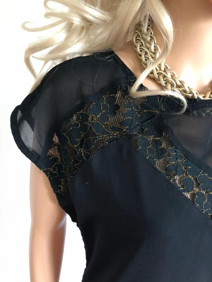robe noire et dorée à manches courtes avec dentelle Grace & Mila taille S jamais portée