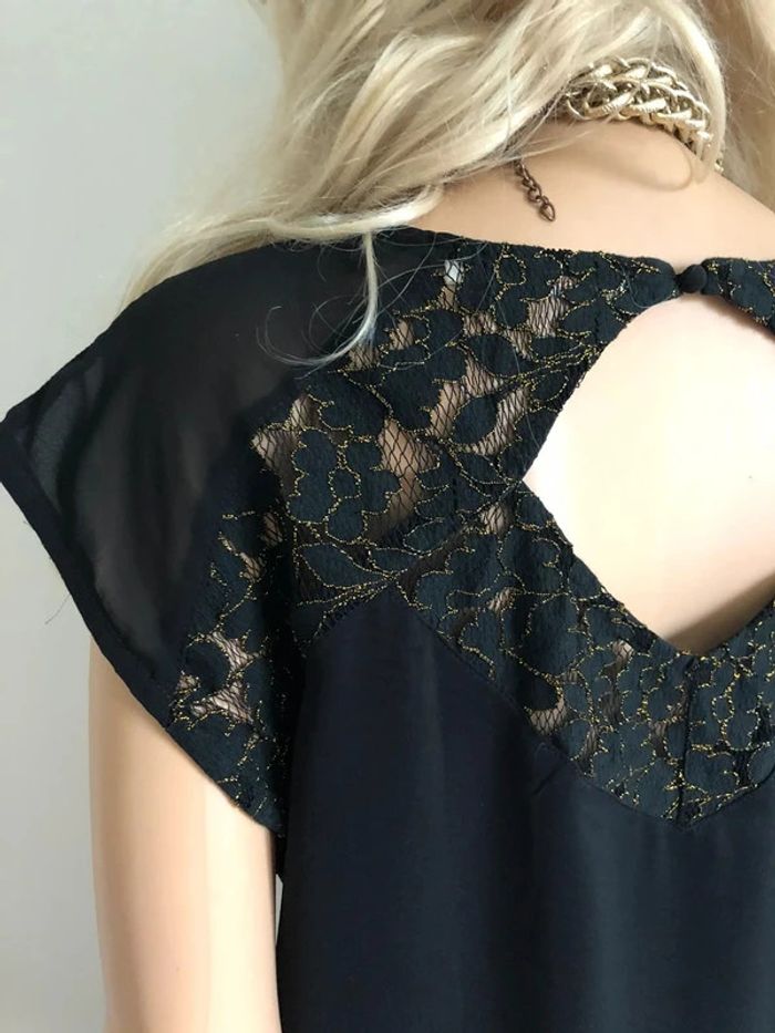 robe noire et dorée à manches courtes avec dentelle Grace & Mila taille S jamais portée - photo numéro 11