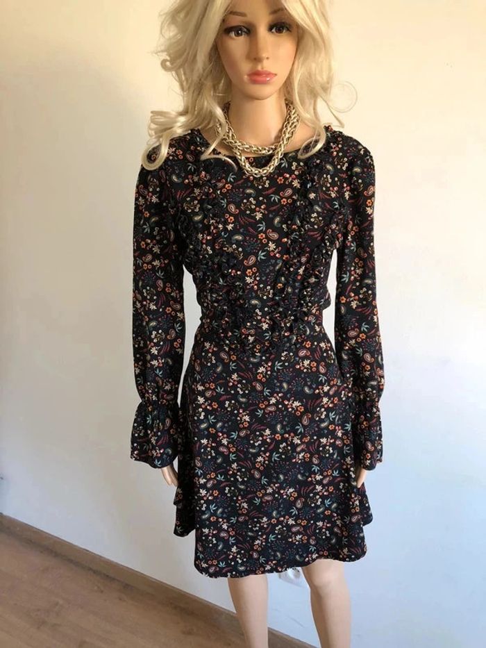 Robe noire et imprimée multicolore à manches longues Morgan taille 38 jamais portée - photo numéro 14