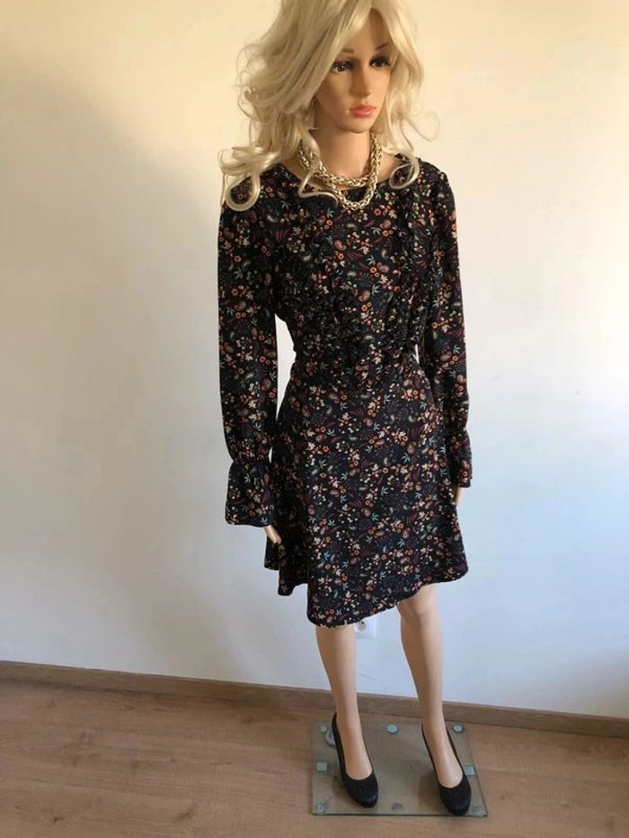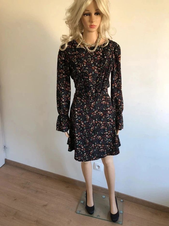 Robe noire et imprimée multicolore à manches longues Morgan taille 38 jamais portée - photo numéro 11