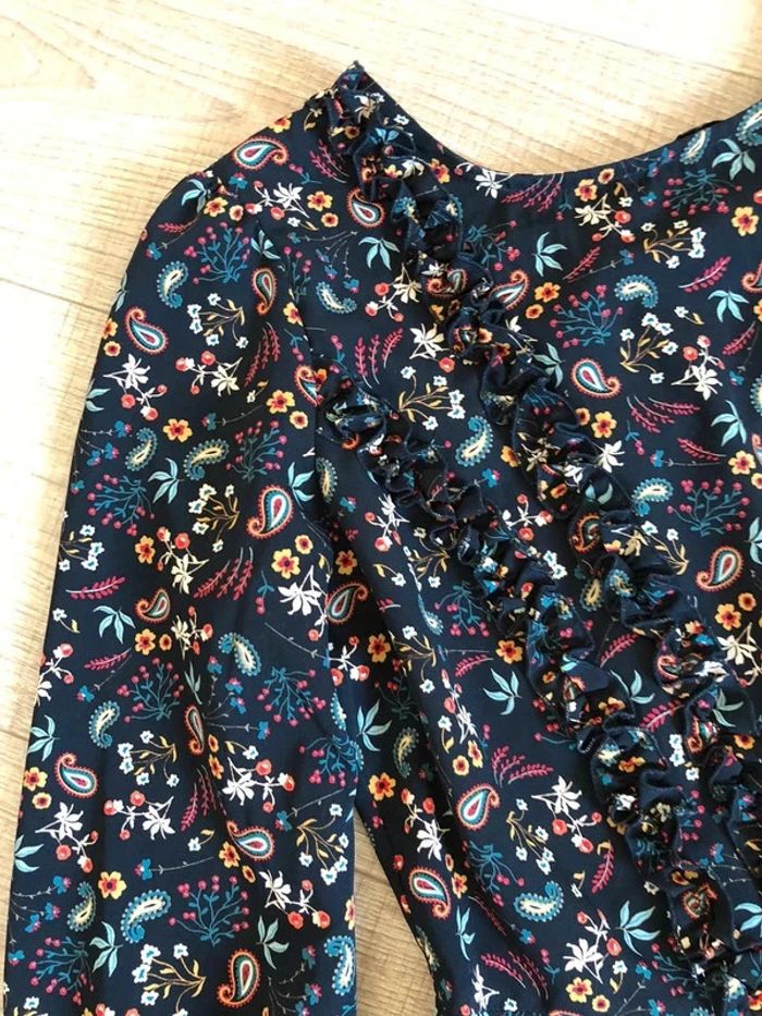 Jolie robe imprimée noire et multicolore à manches longues, de marque Morgan. Taille 38. Fermeture dans le dos. Jamais portée car pas mon style, etat neuf. aisselle à aisselle 46 cms épaule à épaule 39 cms longueur manches 61 cms taille 37 cms longueur depuis épaule 92 cms 100% polyester Le prix reste négociable dans la limite du raisonnable. Un petit cadeau dans le colis 🌸