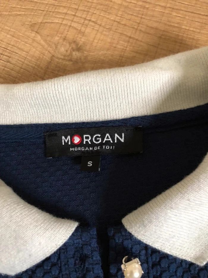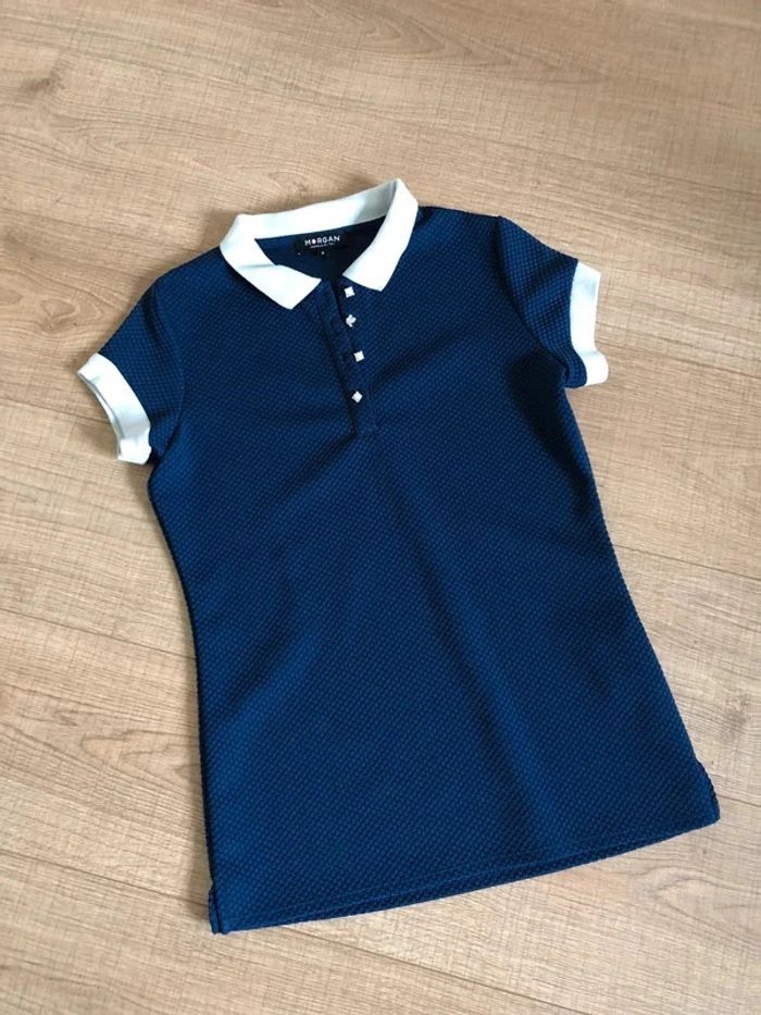 Polo bleu marine à manches courtes Morgan taille S état satisfaisant - photo numéro 7