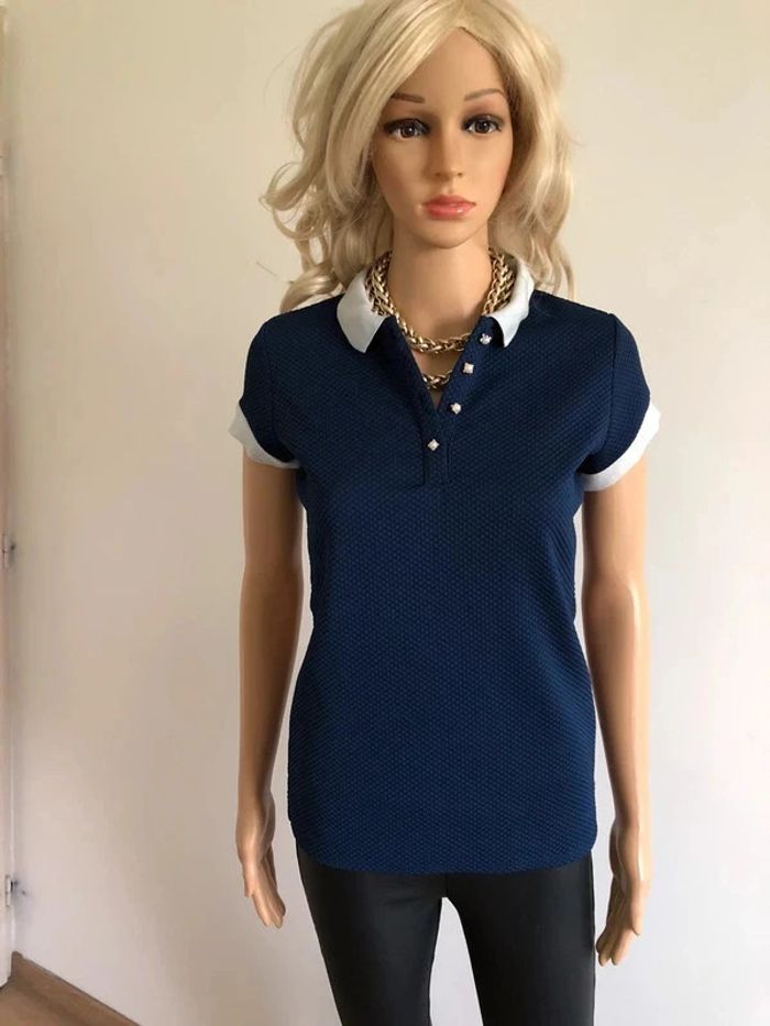 Polo bleu marine à manches courtes Morgan taille S état satisfaisant - photo numéro 11