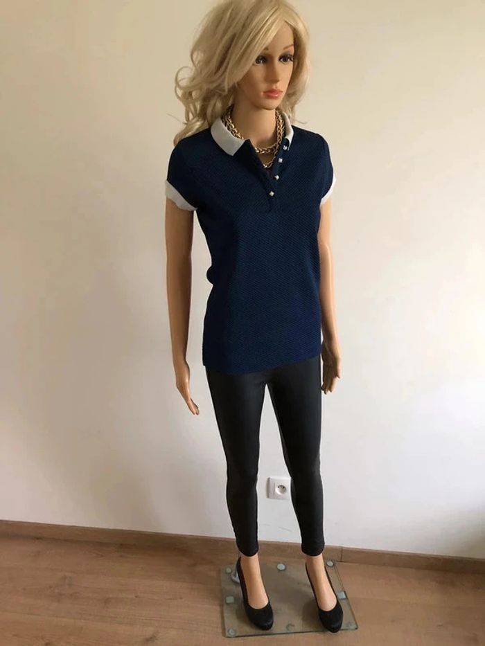 Polo bleu marine à manches courtes Morgan taille S état satisfaisant - photo numéro 10