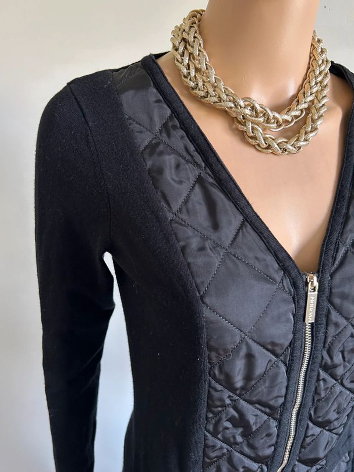 Magnifique robe pull noire bi matière, à manches longues, de marque Morgan. Taille M. Portée deux fois, en très bon état. aisselle à aisselle 43 cms à 50 cms épaule à épaule 37 cms à 41 cms longueur manches 59 cms taille 37 cms à 41 cms longueur depuis épaule 85 cms Le tissu est extensible 80% viscose et 20% polyamide Le prix reste négociable dans la limite du raisonnable. Un petit cadeau dans le colis 🌸