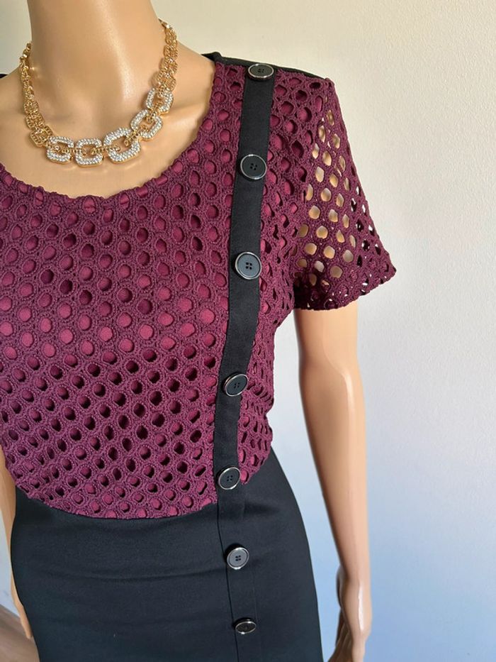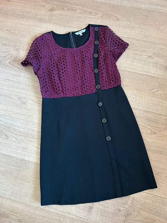 Magnifique robe noire et bordeaux à manches courtes, de marque Jus d’Orange. Fermeture dans le dos. Taille 4 qui correspond à du 42. Jamais portée, état neuf. aisselle à aisselle 46 cms et plus épaule à épaule 41 cms et plus taille 42 cms et plus longueur depuis épaule 91 cms Le tissu est extensible 63% viscose, 32% polyamide et 5% elasthanne Le prix reste négociable dans la limite du raisonnable. Un petit cadeau dans le colis 🌸