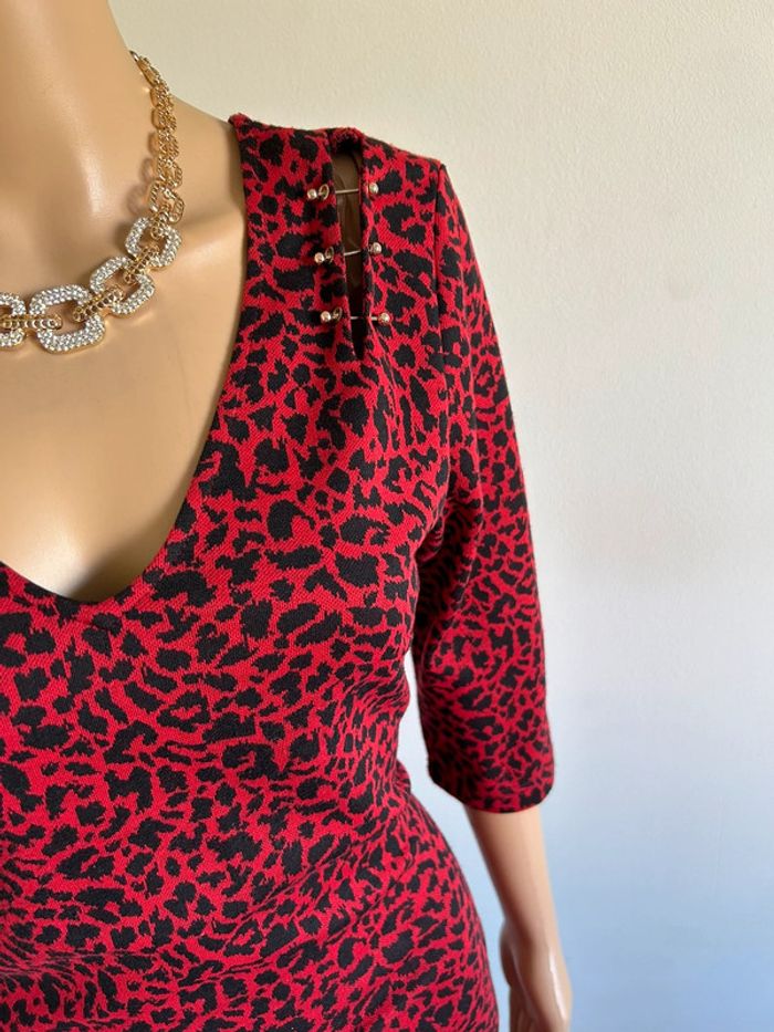 Magnifique robe léopard rouge et noire, avec manches 3/4, de marque Jus d’Orange. Taille 4 qui correspond à du 42. Portée une fois, en excellent état. aisselle à aisselle 46 cms et plus épaule à épaule 40 cms et plus taille 40 cms à 45 cms longueur depuis épaule 91 cms Le tissu est extensible Étiquette intérieure de composition coupée. Le prix reste négociable dans la limite du raisonnable. Un petit cadeau dans le colis 🌸