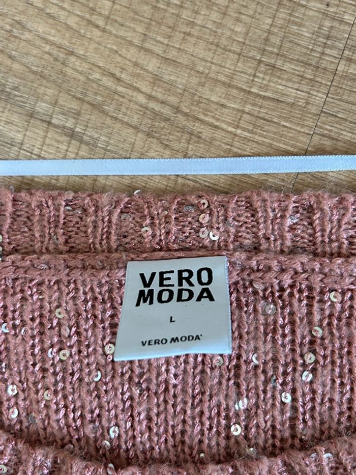 Pull rose avec sequins Vero Moda taille L TBE (taille petit) - photo numéro 4
