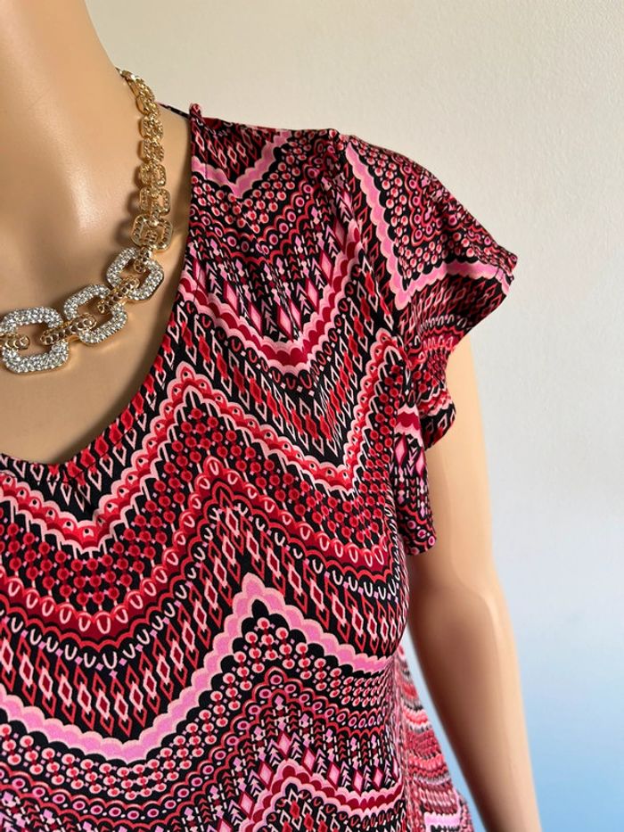 Jolie blouse imprimée à manches courtes, de marque LolaLiza. Taille 34. Jamais portée, état neuf. aisselle à aisselle 38 cms à 45 cms taille 36 cms et plus longueur depuis épaule 53 cms Le tissu est extensible 95% polyester et 5% elasthanne Le prix reste négociable dans la limite du raisonnable. Un petit cadeau dans le colis 🌸 (Boîte 1)